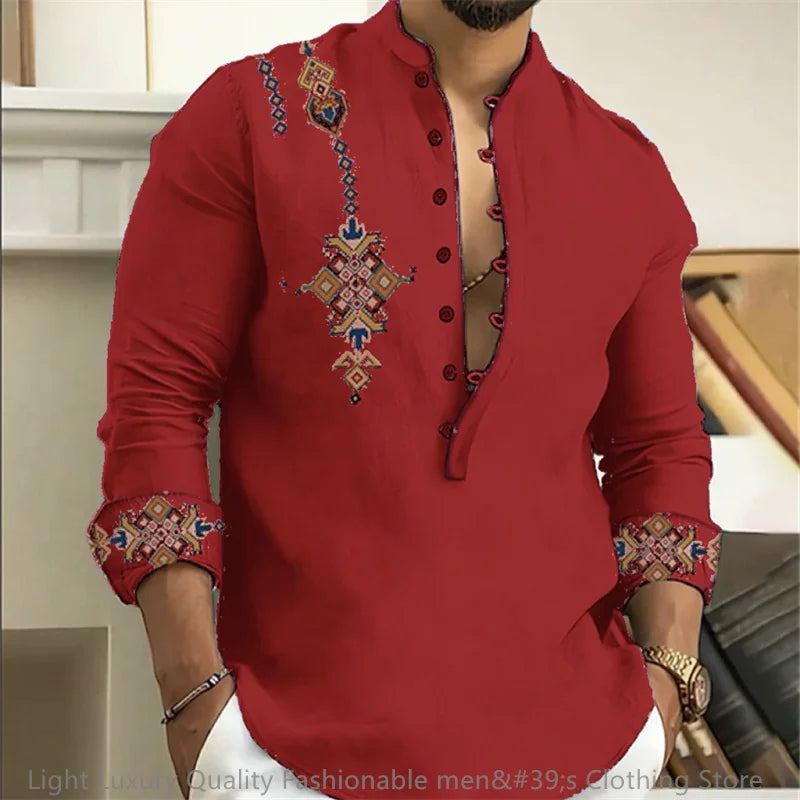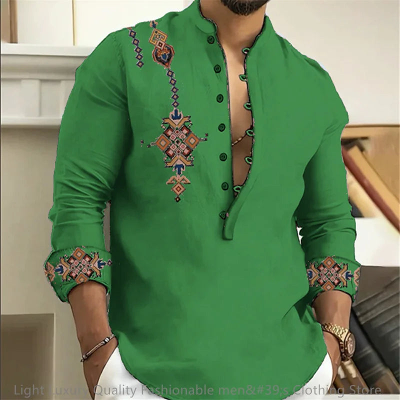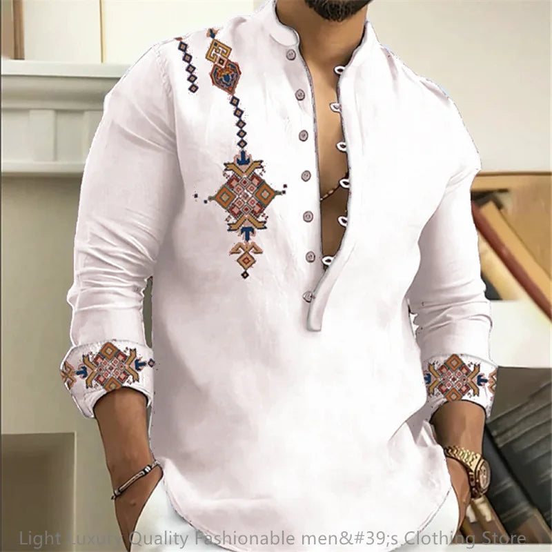 15-color men's shirt tribe pattern printing retro geometry leads outdoor street long-sleeved shirt super large size XS-6XL