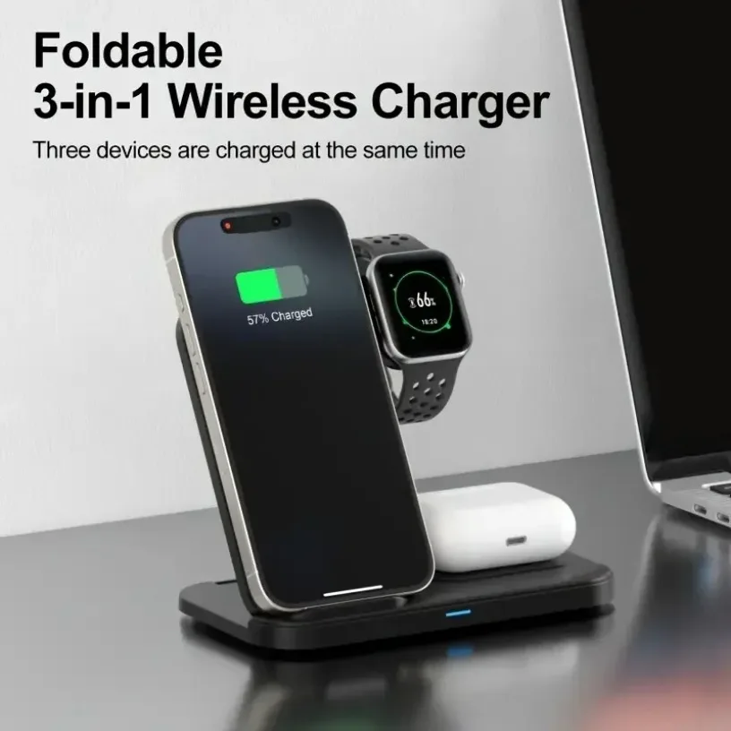 15W 3 in 1 Wireless Charger Fold Phone Chargers Desktop Charging Dock For iPhone 16-12 Pro iWatch 10~2 SE AirPods 4/3 Pro 2/1