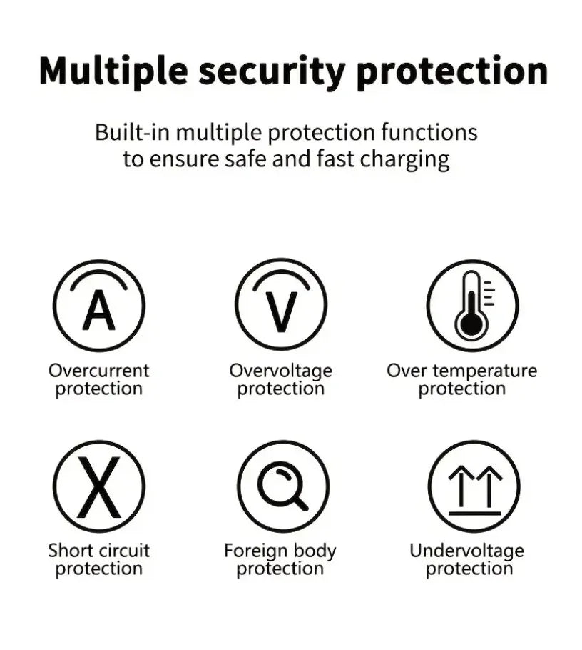 With intelligent protection technology and built-in intelligent chip, it provides over-voltage protection, over-current protection, short-circuit protection and over-heat protection to ensure absolutely safe and stable charging experience.