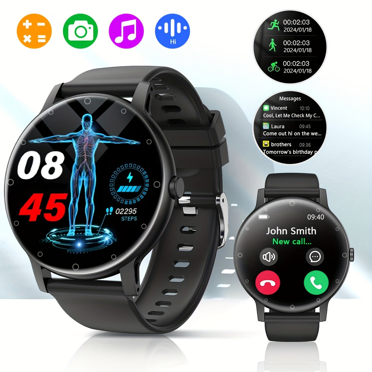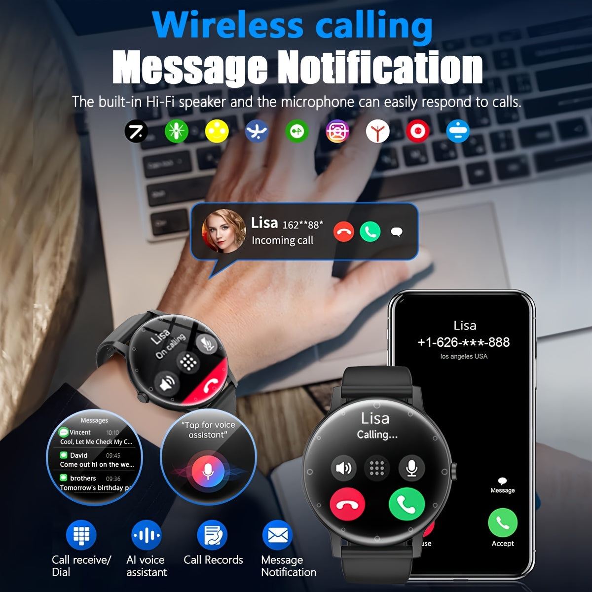 1pc Hailiases Smart Watch 1.39'' Full Touch Screen, Sleep Tracker, Wireless Calling, Music Control, 100+ Sports Modes, AI Voice Control, Fitness Bracelet, Rechargeable 200mAh Battery, Non-Waterproof, Compatible with Android/i