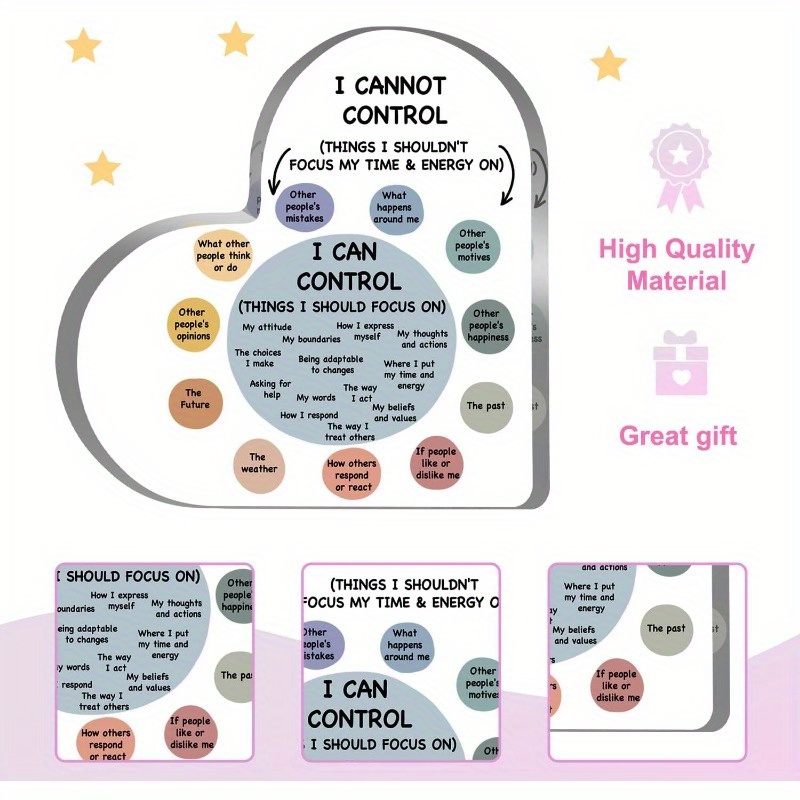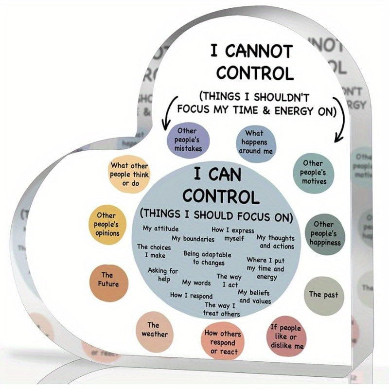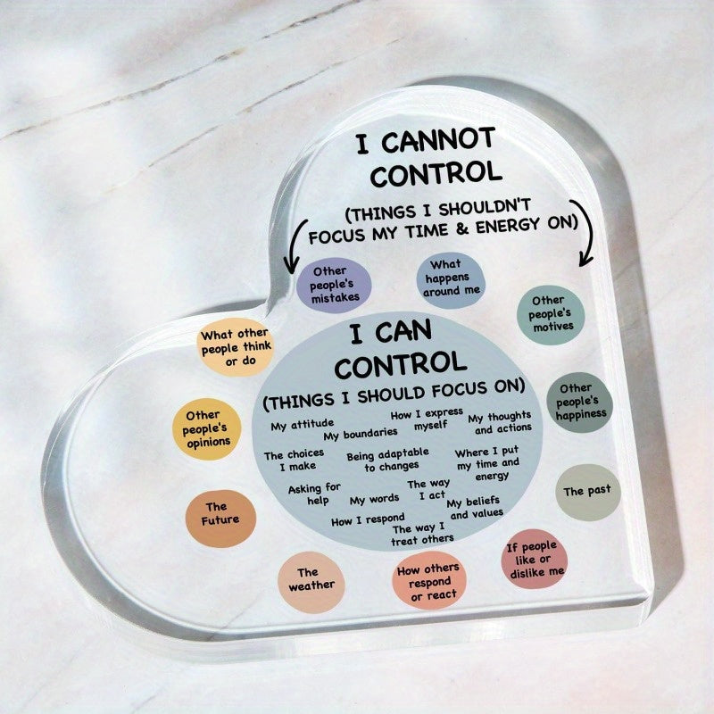 1pc Mental Health Decor, School Counselor Sign Things I Can Control Acrylic Heart Gifts, Therapist Office Art Decorations For Therapist Office Living Room Bedroom Desktop Gift
