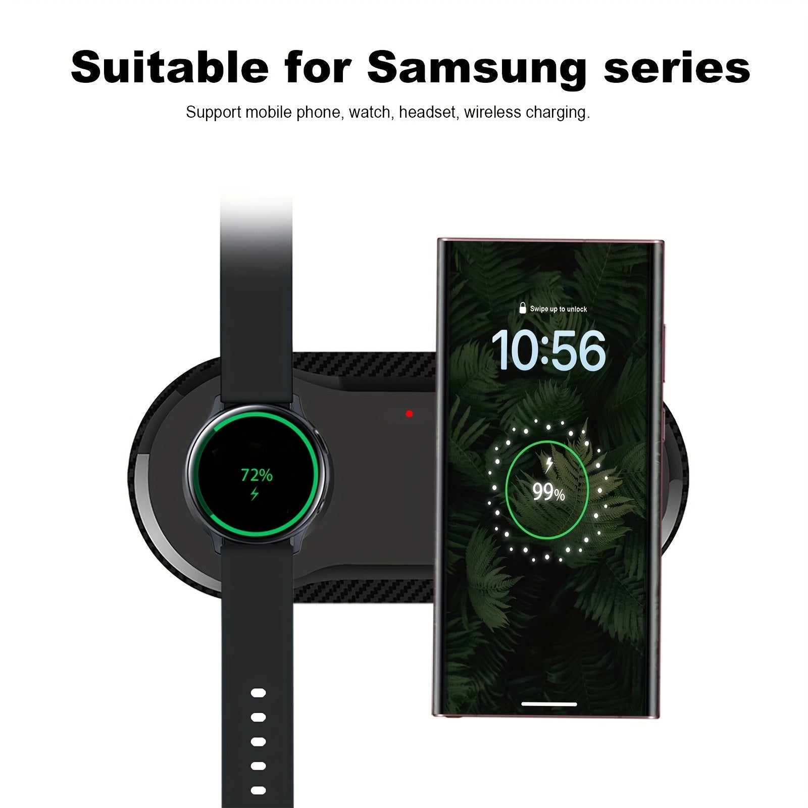 2 IN 1 Charging:newly designed 2 in 1 wireless charger, specially for your multiple for Samsung devices (phone/Galaxy watch/wireless earbuds). making life simpler and more convenient.(Note: The watch charging part of the charging station is ONLY for Galaxy watches)
