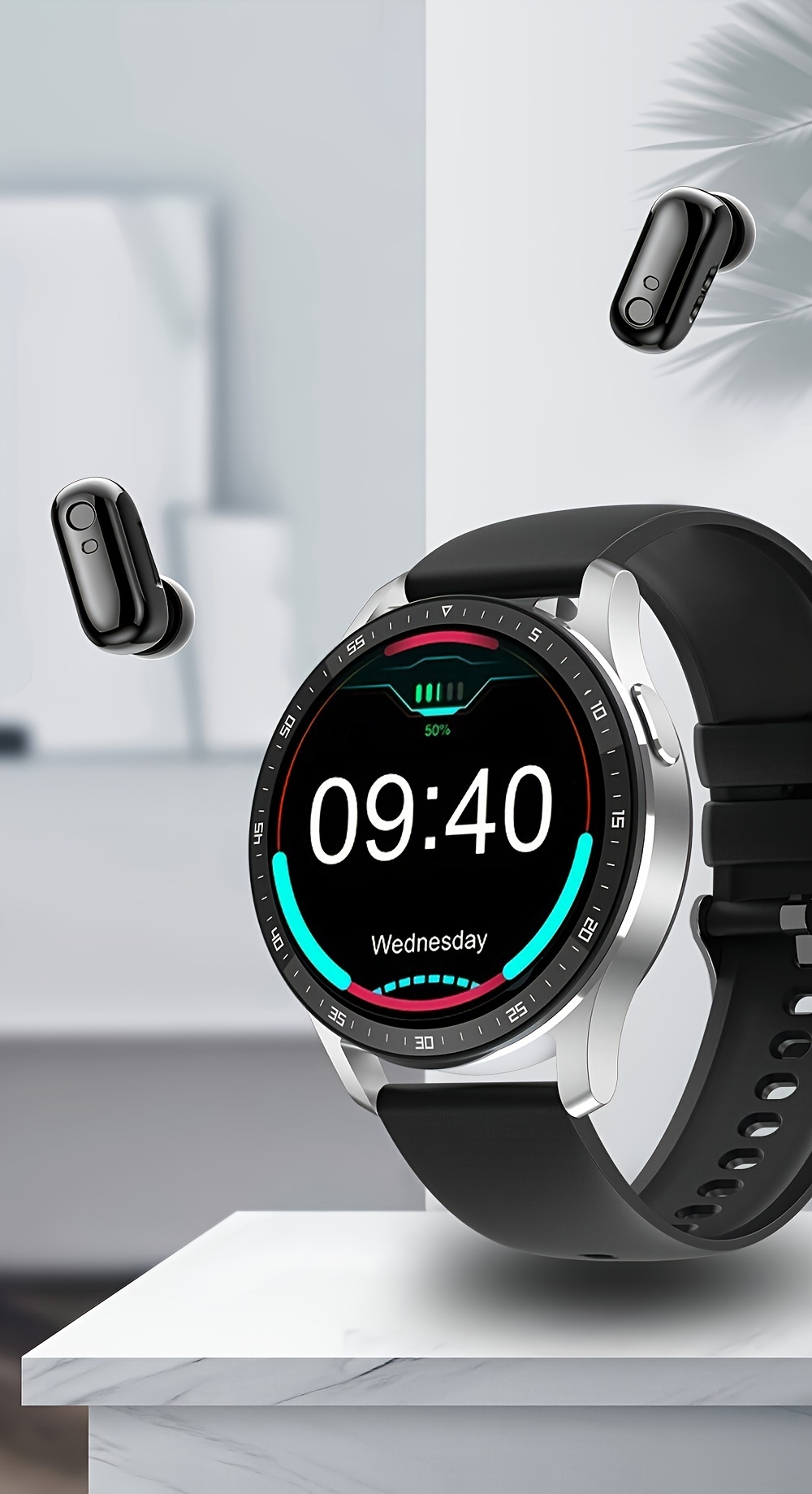 2-in-1 Smart Earphones Watch - Built-in Earbuds, Sports Waterproof, Hands-Free Calling, Compatible with Android and iPhone, Unisex Design for Men and Women