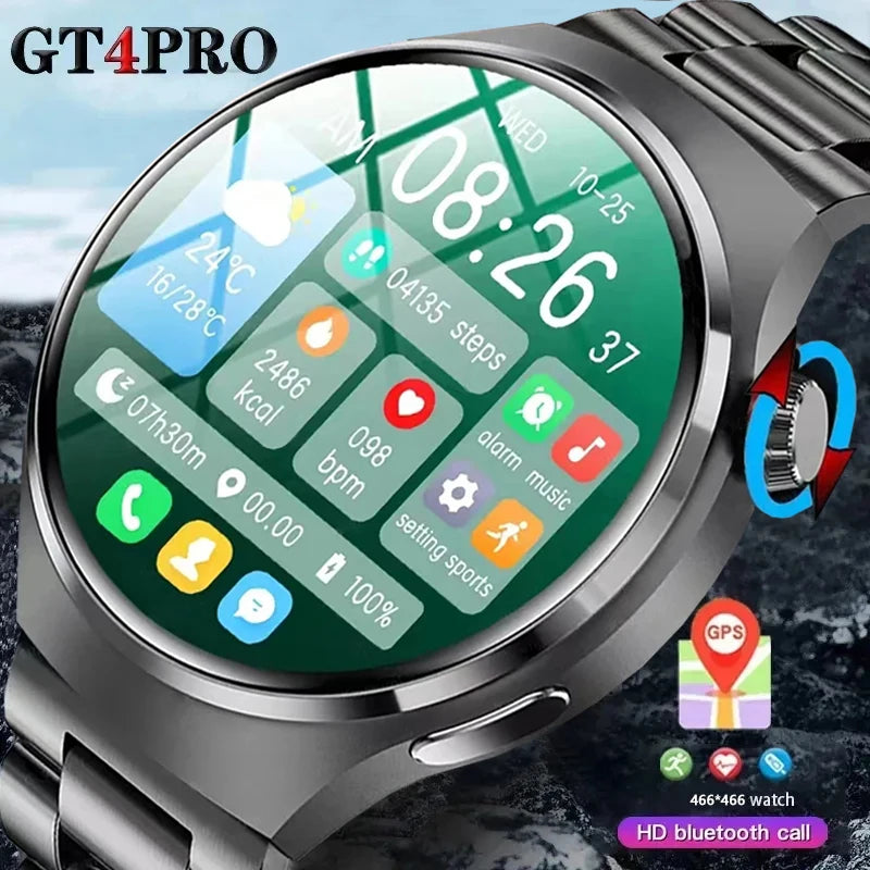 2024 New For Android Smart Watch Men's GT4 Pro 466 * 466 HD screen Bluetooth call IP68 Waterproof Sports Heart rate Smart Watch