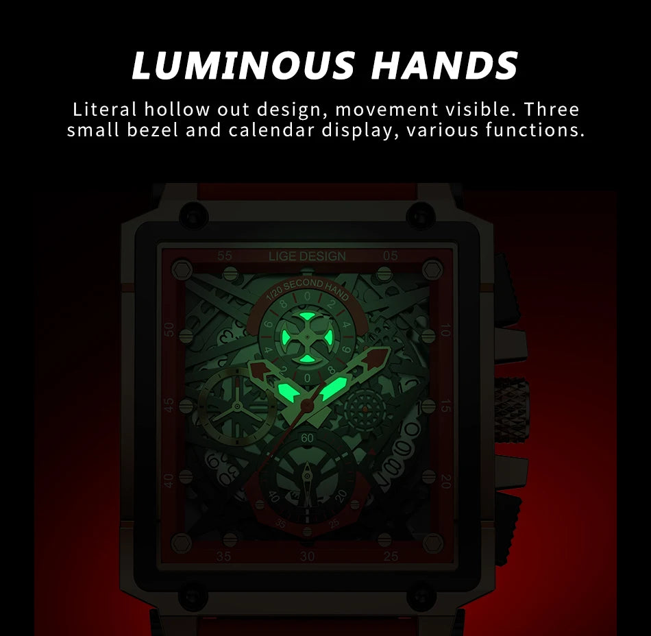 2024 New Top LIGE Brand Luxury Men Watch Business Square Watch Men Casual Sport Quartz Chronograph Clock Male Waterproof Watches