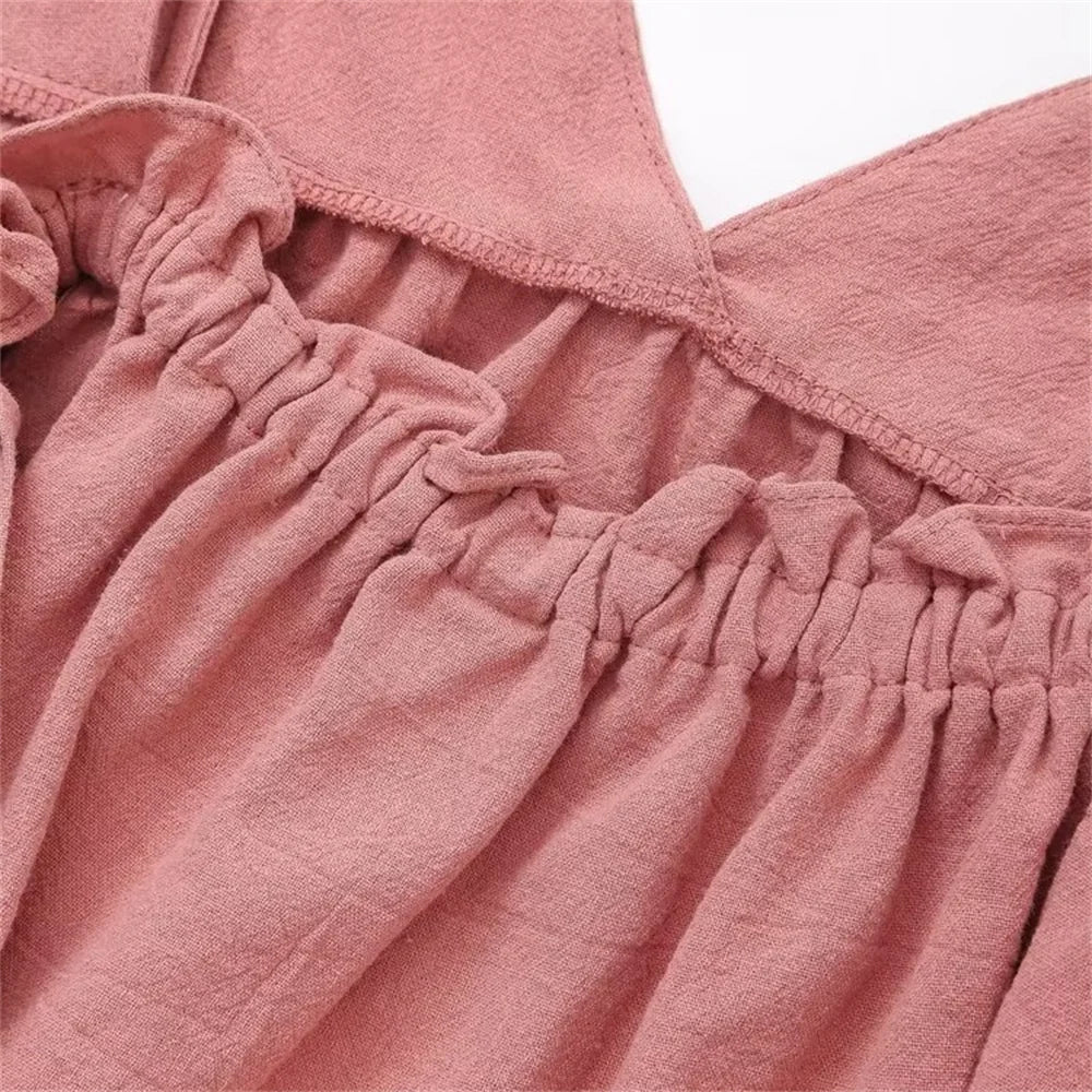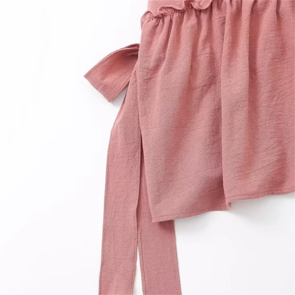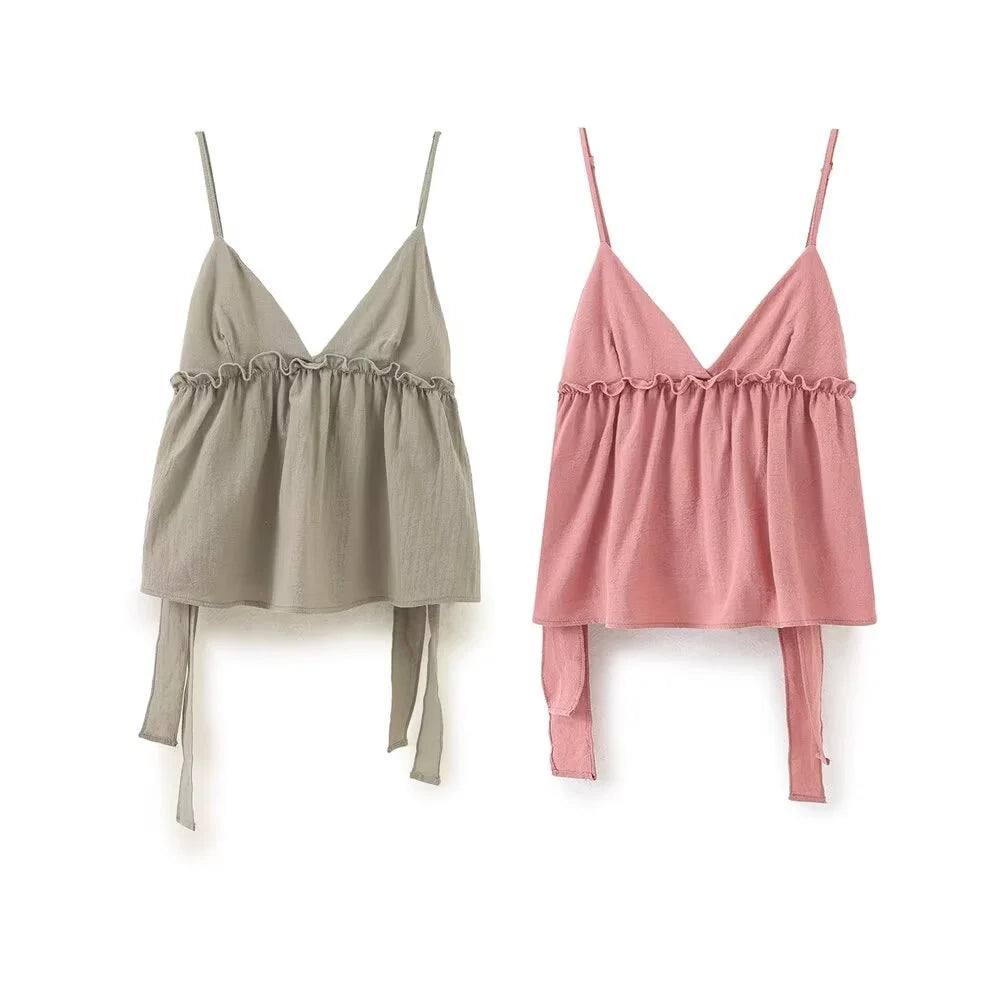 2024ZAR4 summer new women's European and American style top with a unique combination of lace up and ruffle suspender