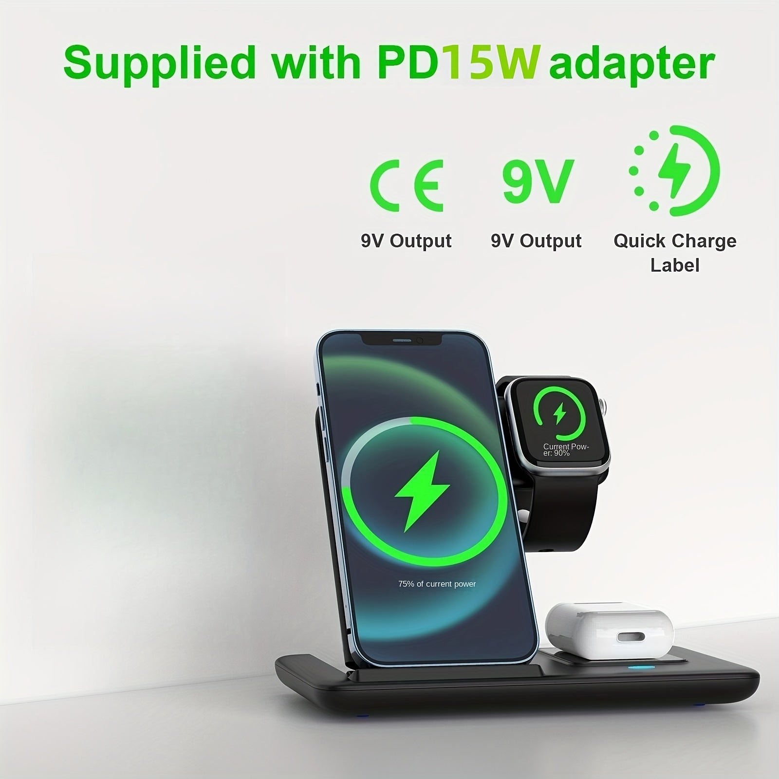 3-in-1 Folding Wireless Charger Stand Dock - Fast Charging Station for Multiple Devices, Compatible with Apple Watch Ultra 8 7 6 5 4 3 2 SE, Airpods Pro 2 Pro 3 2, iPhone 14 13 11 and Earlier Series