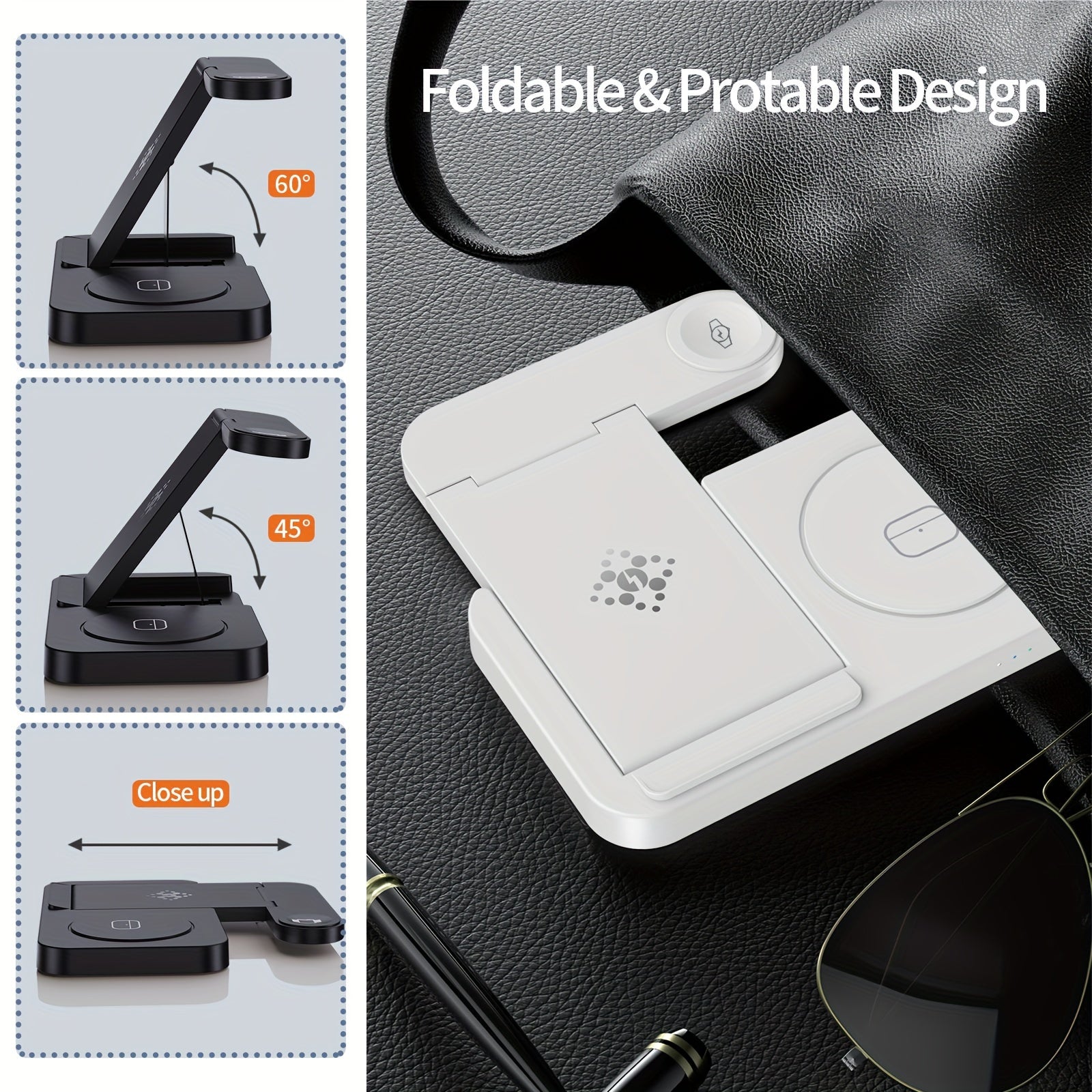 4-In-1 Foldable Fast Wireless Charging Station - Compatible with Samsung S23/S22 Ultra/S22+/S22/S21/S20/Z Flip 4/Z Fold 4, Galaxy Watch 6/5/4/3, Galaxy Buds/Pro, and Multiple Android Devices