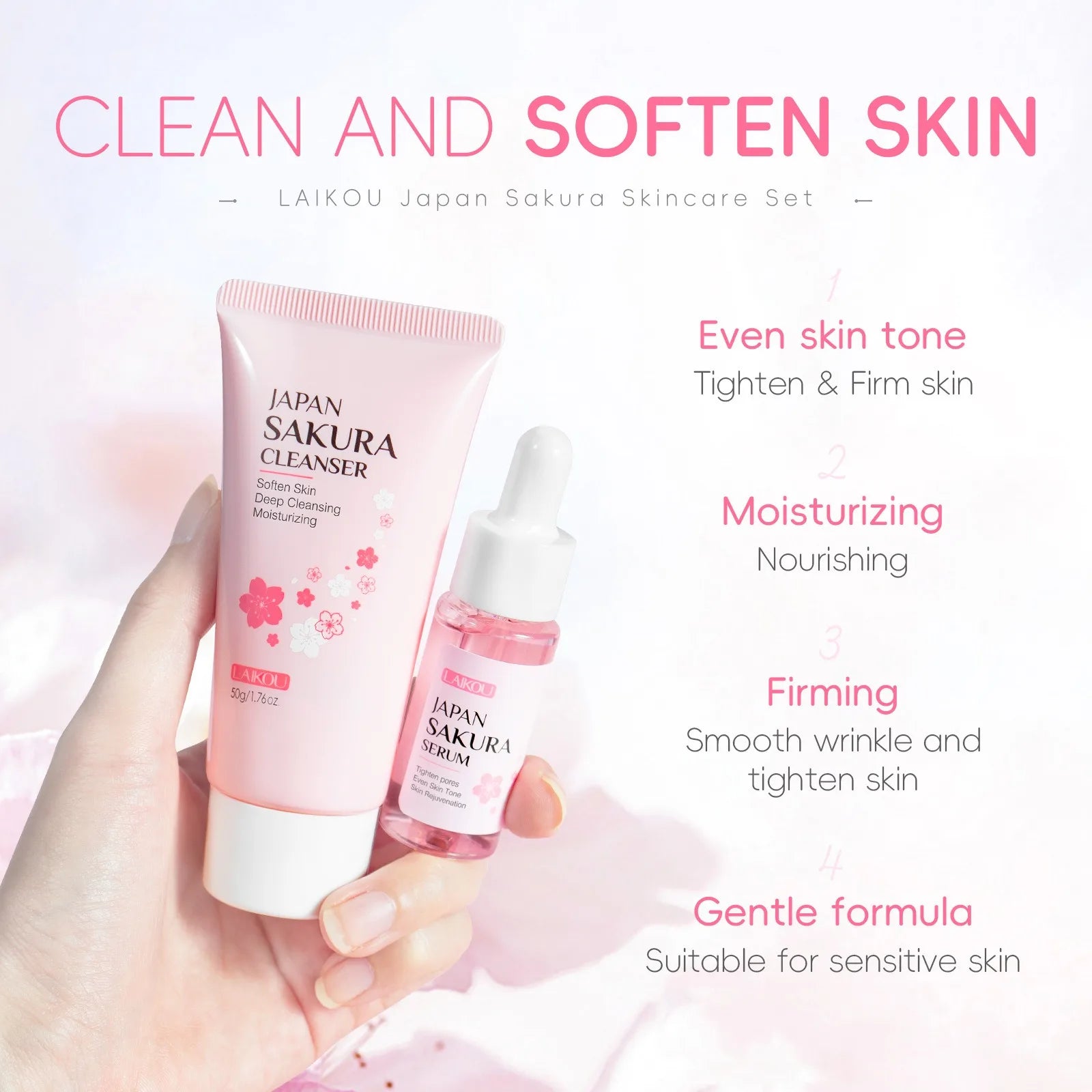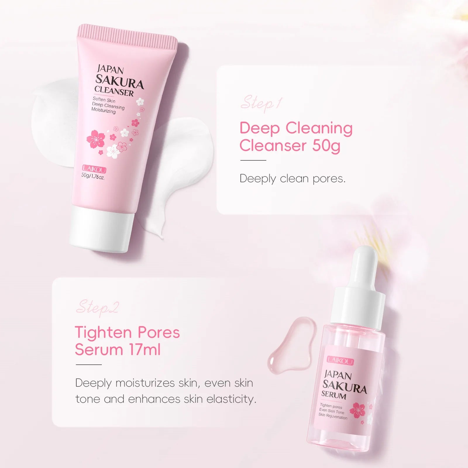 4 PCS Face Skin Care Set Cleanser Sakura Essence Cream Moisturizing Eye Cream Face Serum Improve Roughness & Dryness Skin Care