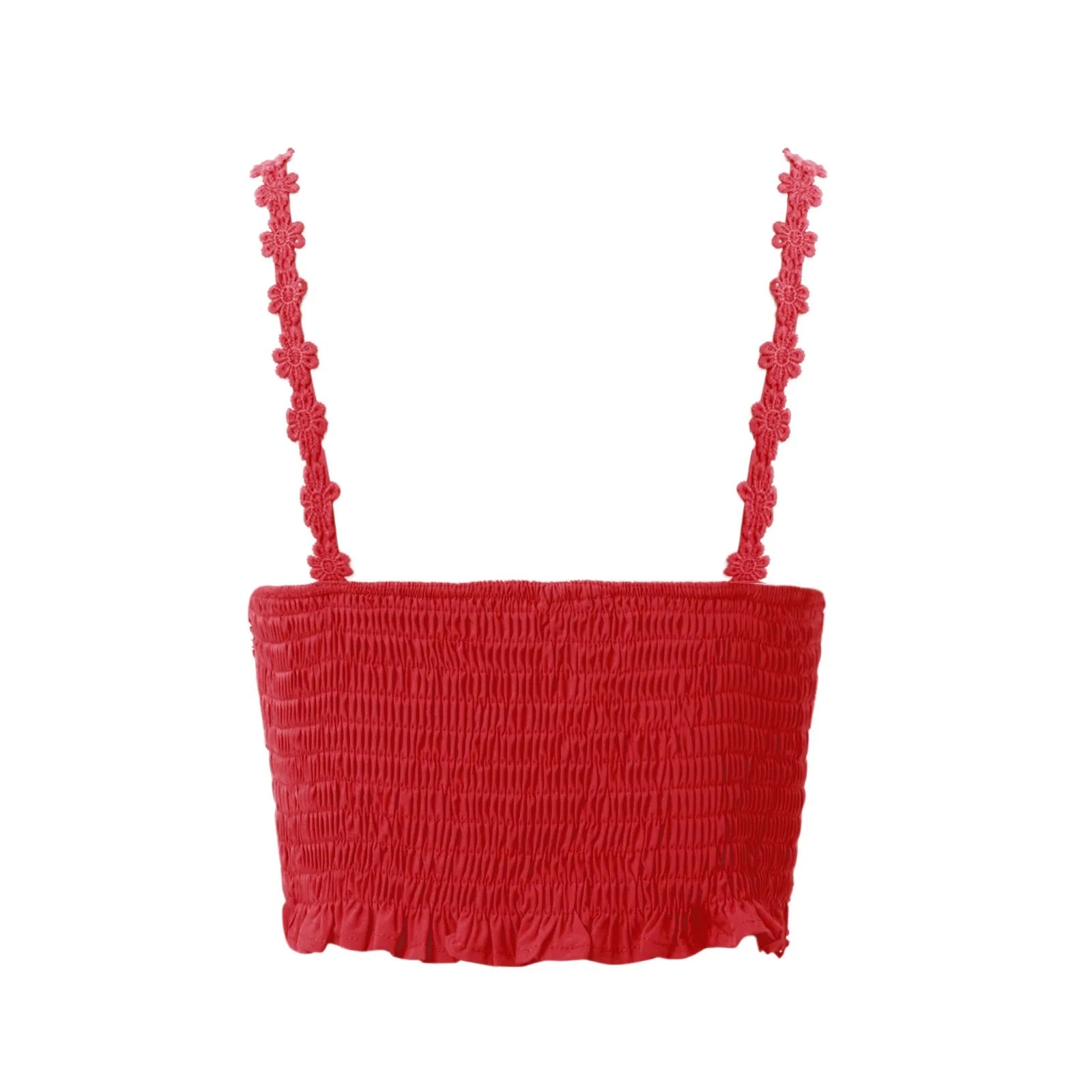 Women Fashion Lace Strap Splice V Neck Tank Vest Shirt Crop Top