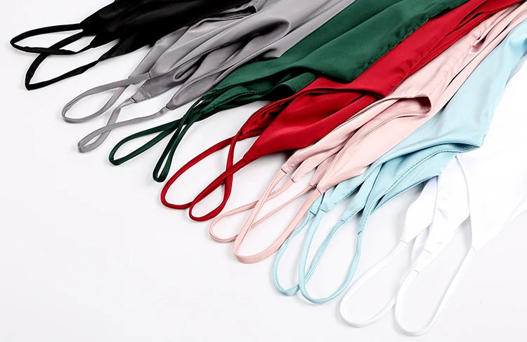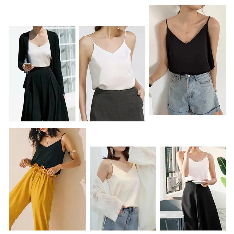 AOSSVIAO 2025 Spaghetti Strap Top Women Halter V Neck Basic White Cami Sleeveless Satin Silk Tank Tops Women'S Summer Camisole