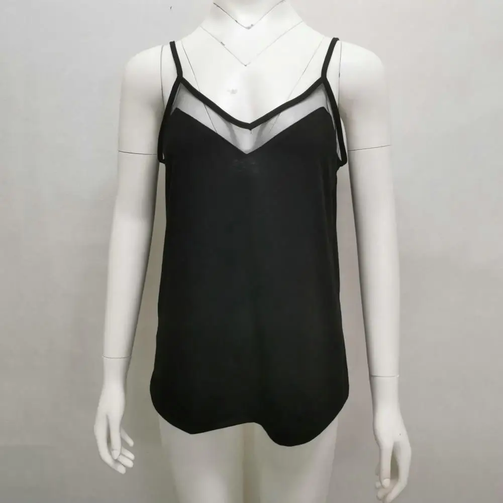 Giving you a simple and sexy style, this women vest has v-neck, suspenders, spaghetti strap and mesh splicing design.