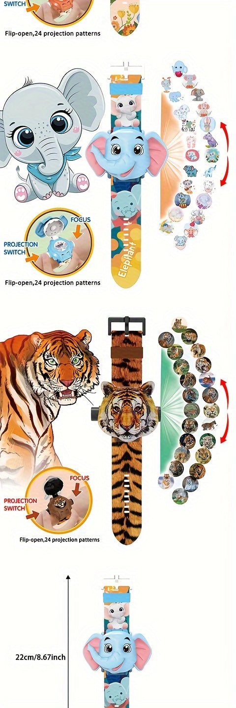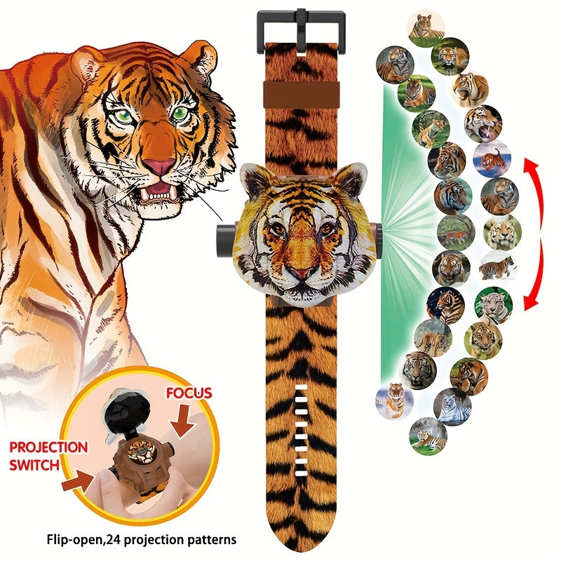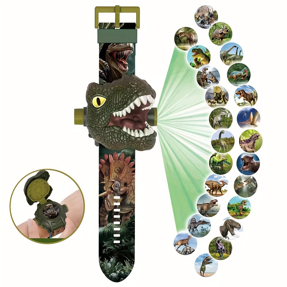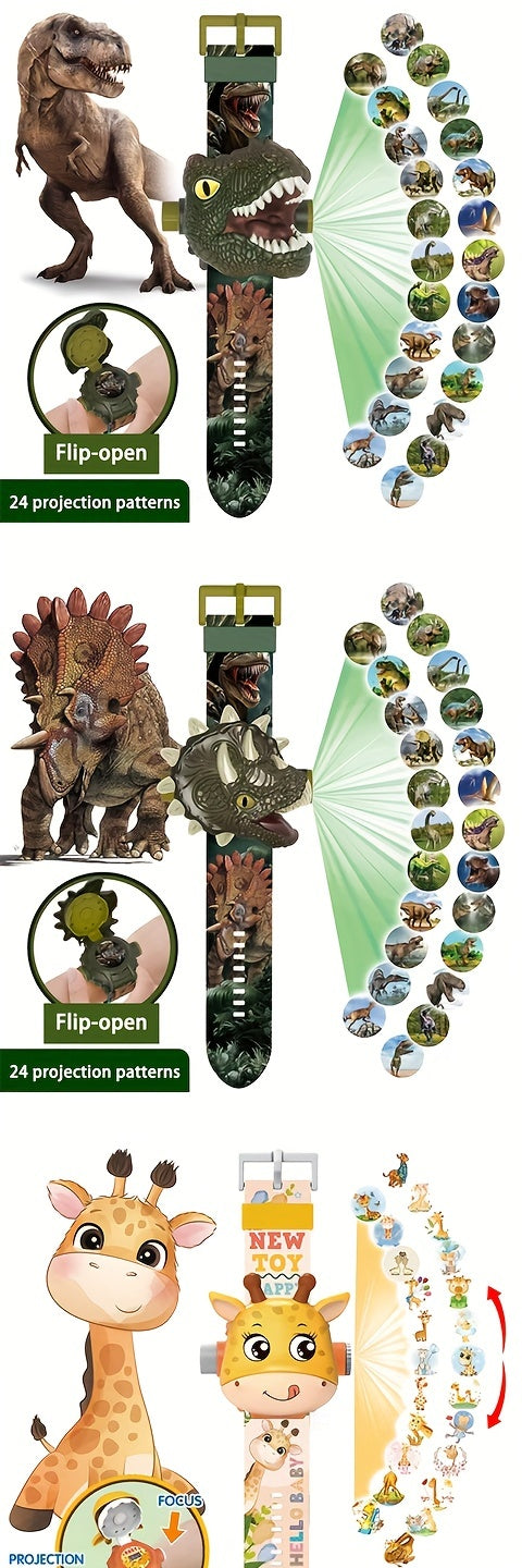 Children Dinosaur Projection Watch Electronic Watch For Kids Flip Watch Adjustable Digital Screen 3D Cartoon Animal 24 Projection Patterns Birthday Gift Educational Toy Christmas, Halloween Gift