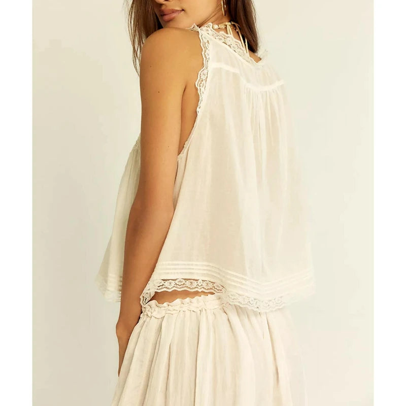 Women's 2 Piece Casual Outfits Sleeveless Tie Front Lace Trim Tank Tops Drawstring Pants Sets