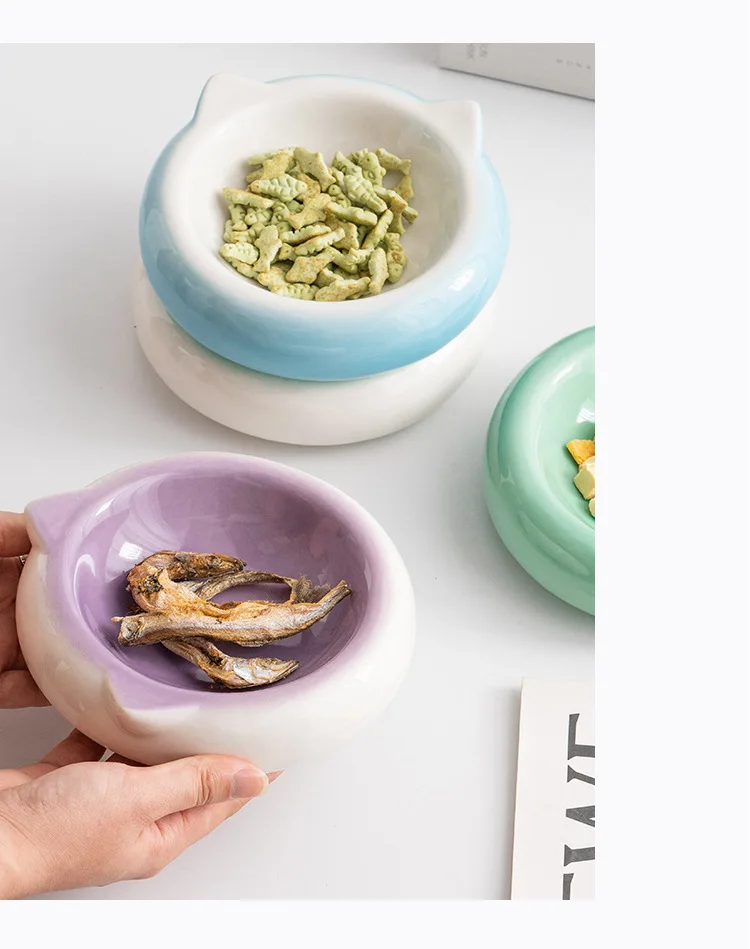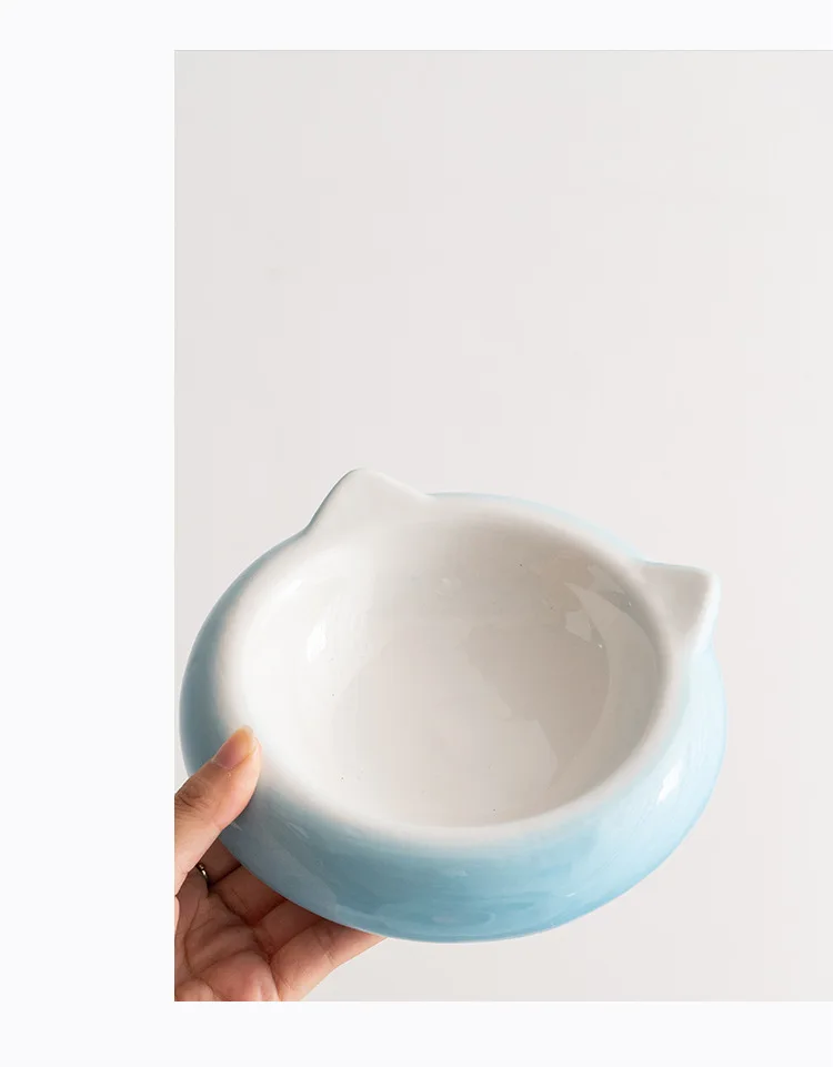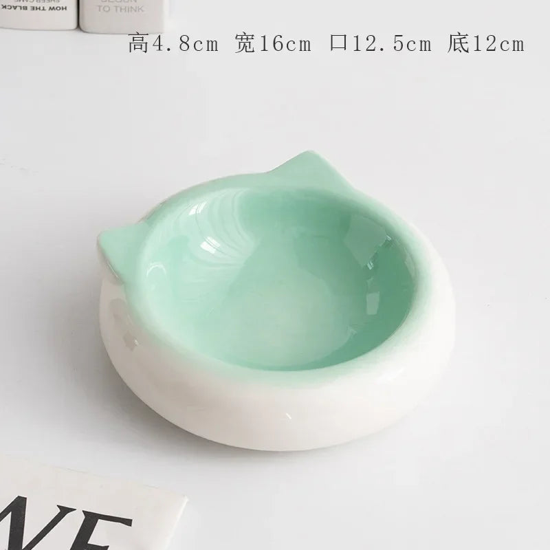 Creative Ceramic Flat Bottomed Cat Ear Shape Food Bowl Dining Plate Anti Overturning Pet Supplies Drinking Bowl