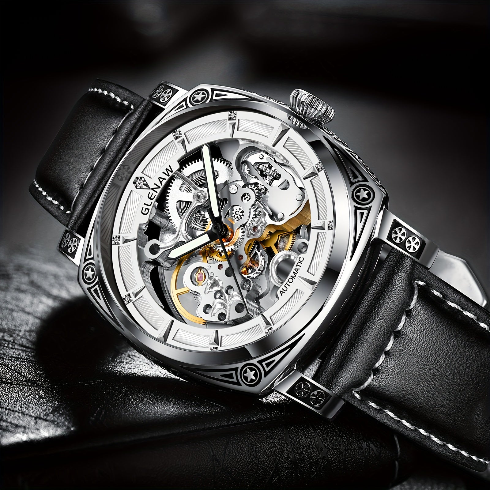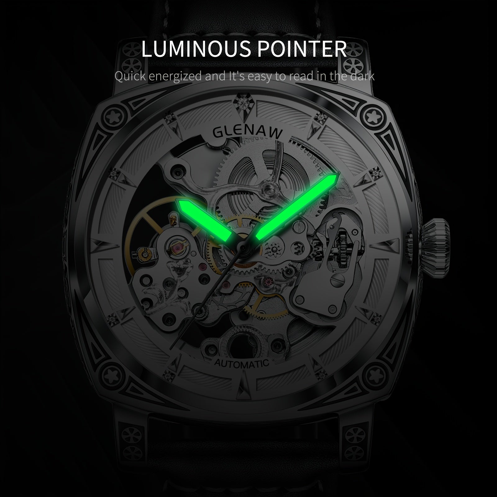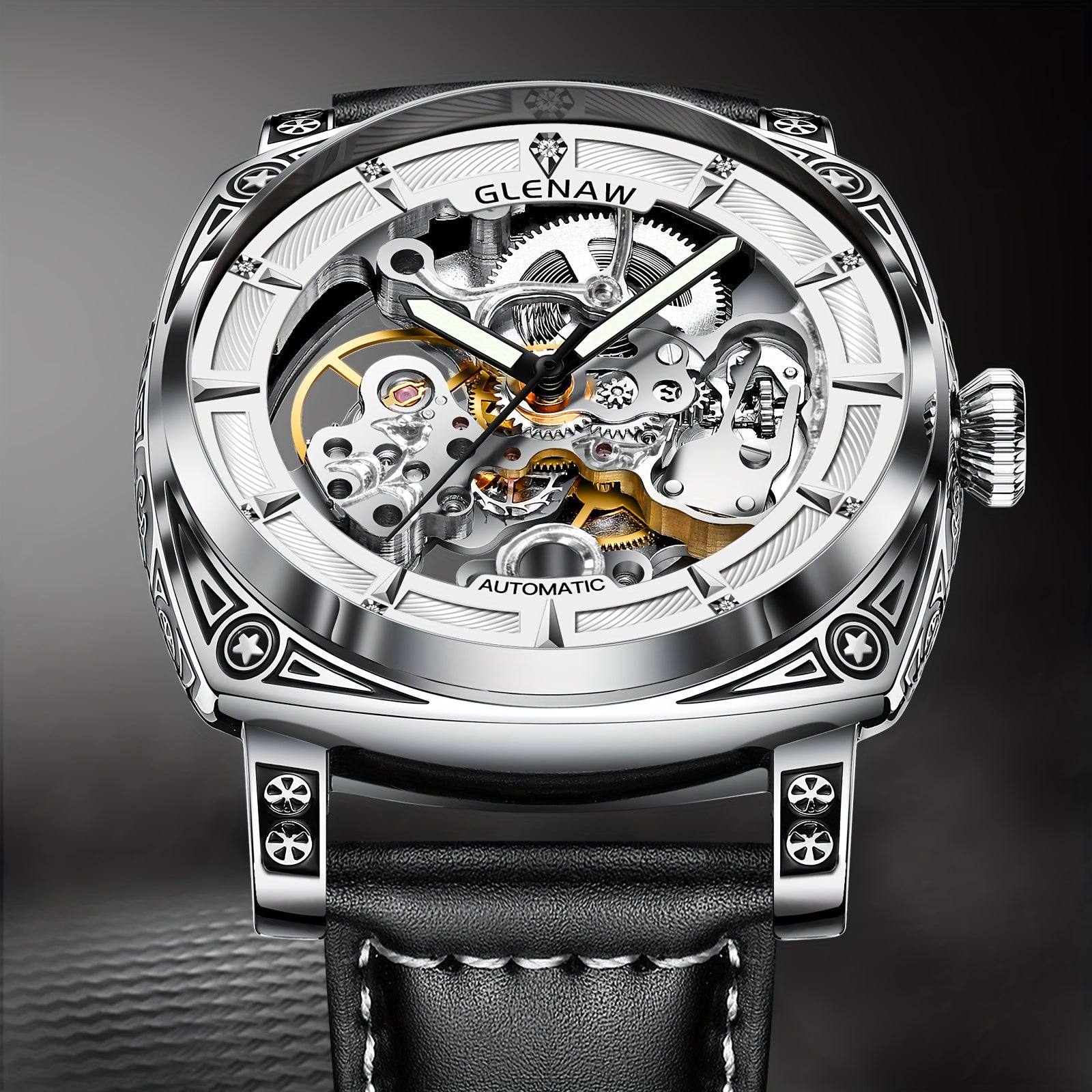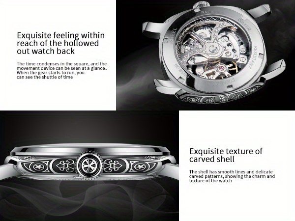 Elegant Vintage-Style Men's Automatic Watch with Hollow-Out Rhinestone Dial, Stainless Steel 30M Waterproof – Ideal Gift Choice