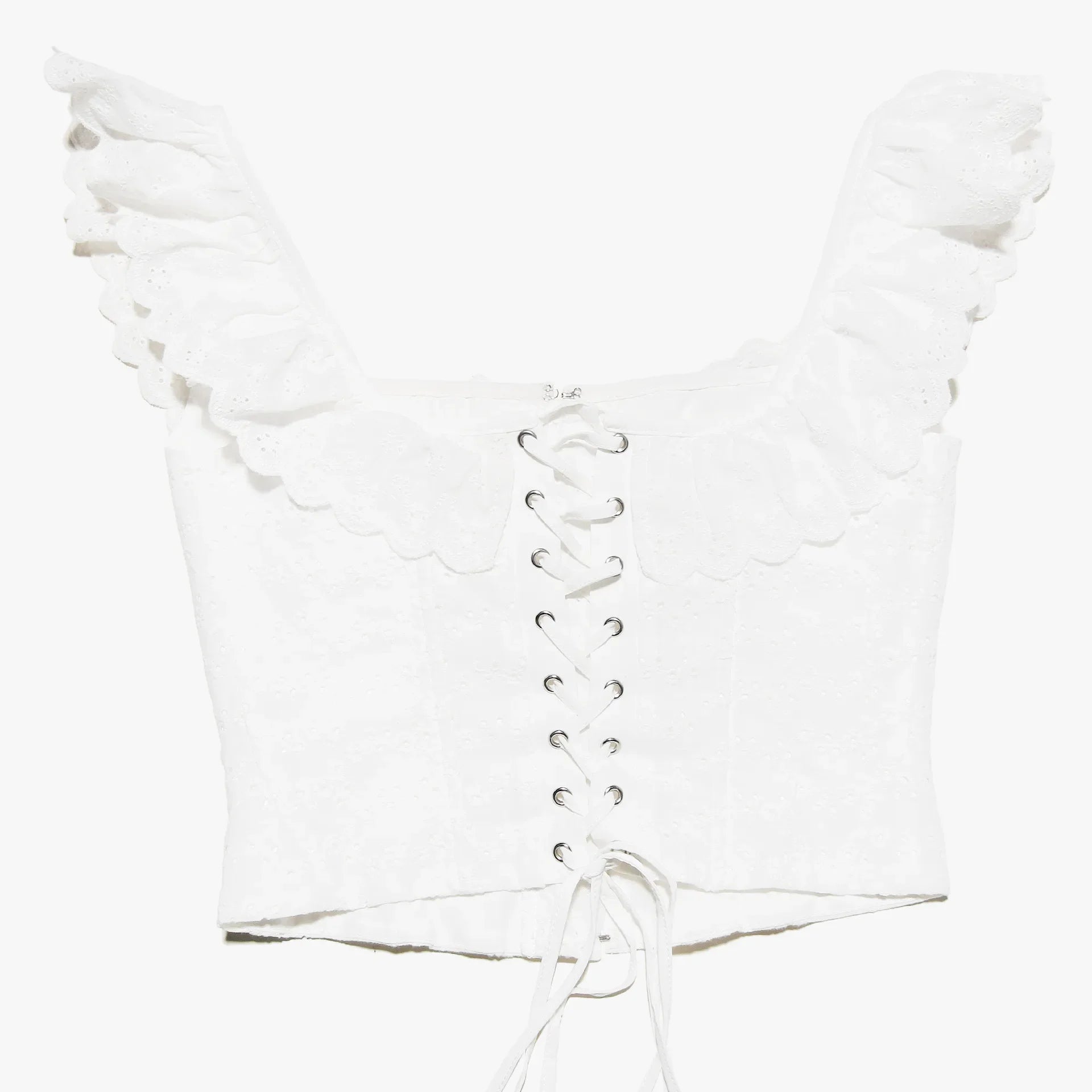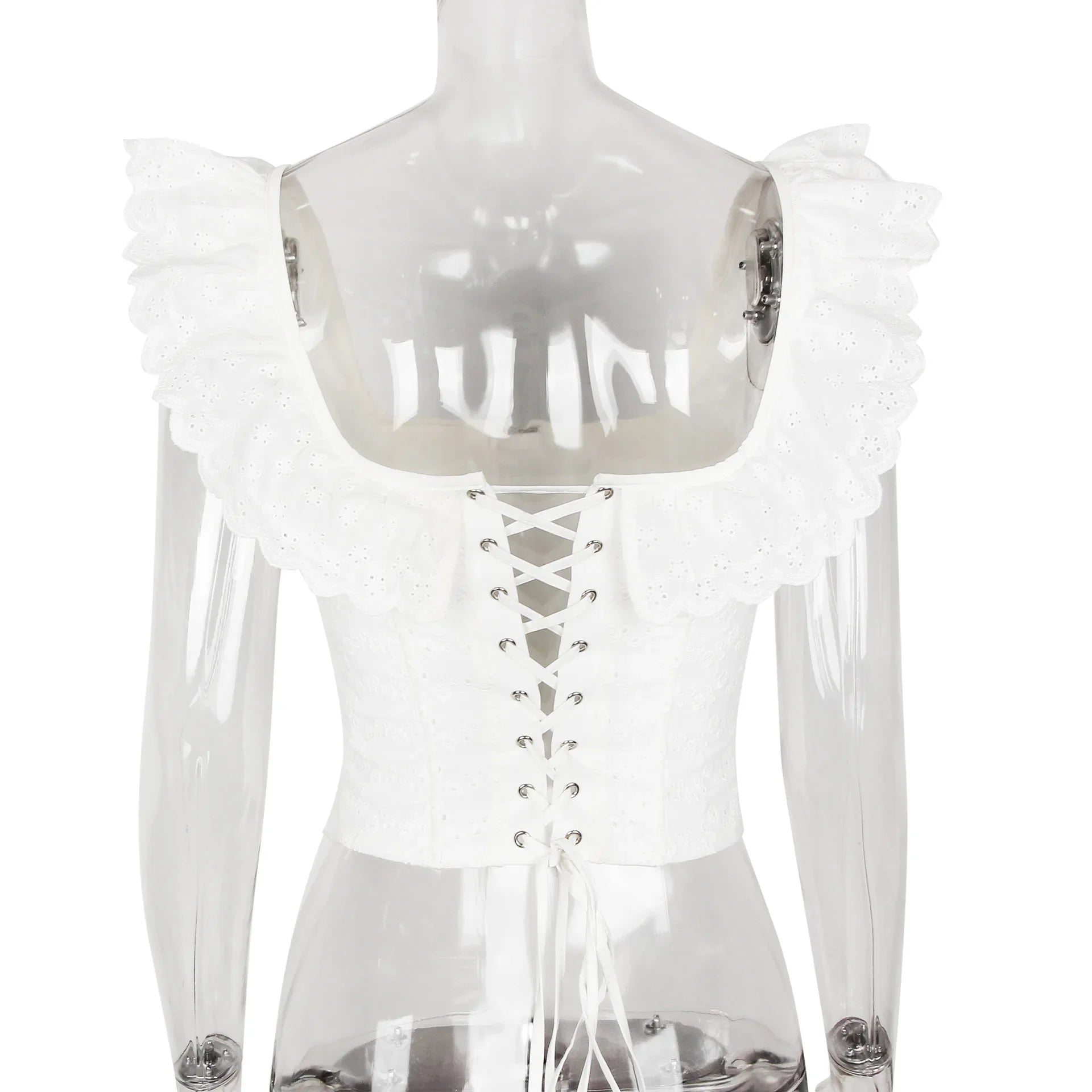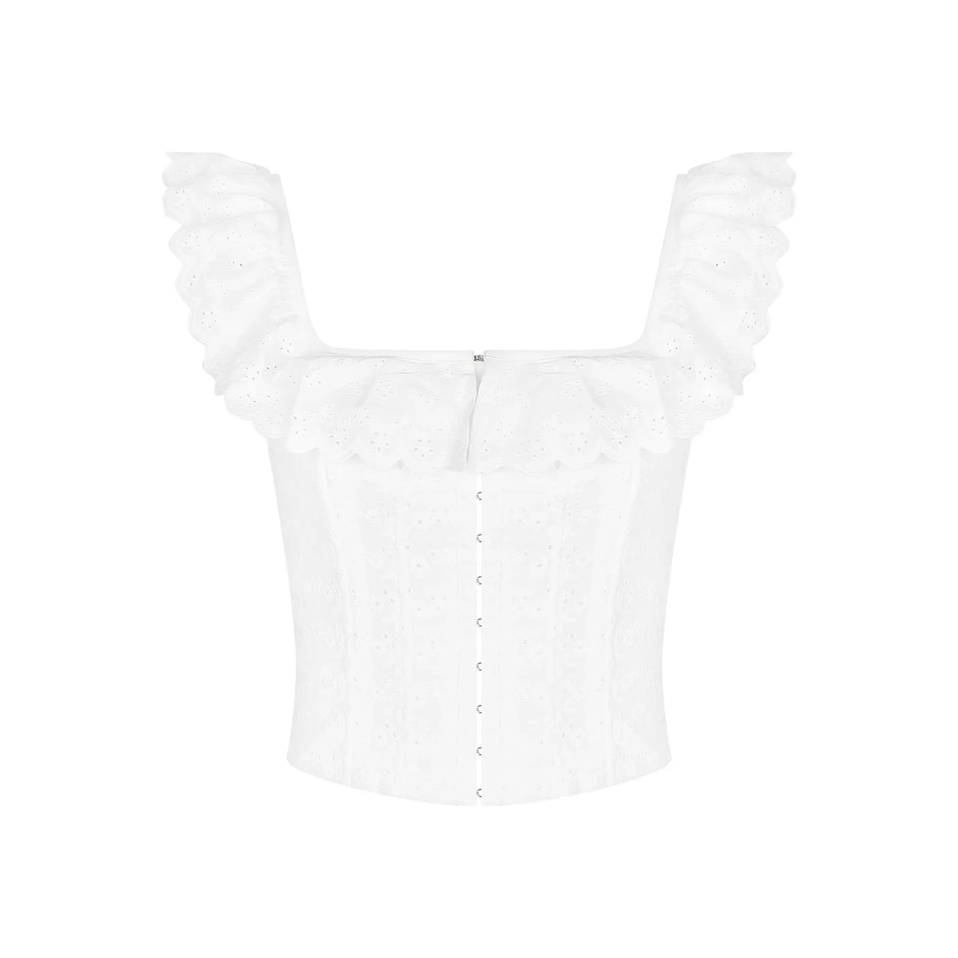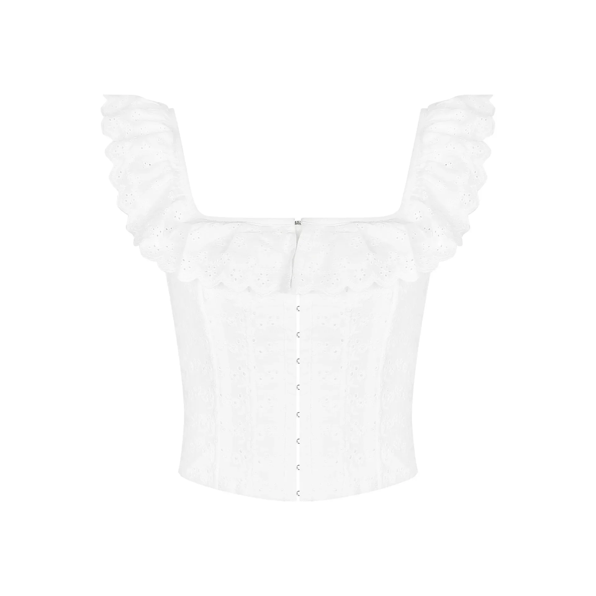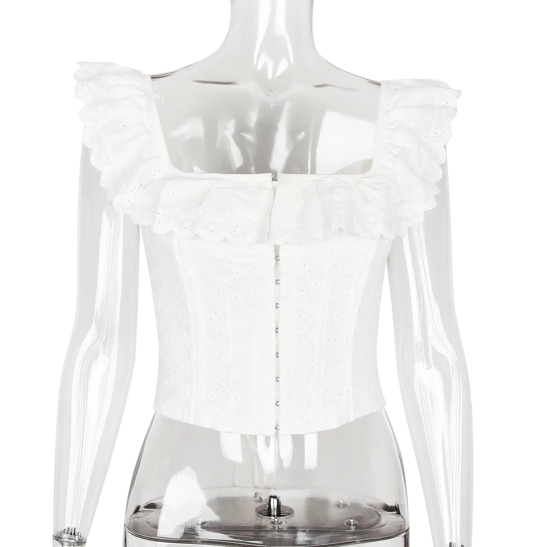 Elegant White Lace Ruffle Corset Vest Women Chic Square Neck Off Shoulder Cropped Tank Top New 2025 Lady Daily Streetwear Summer