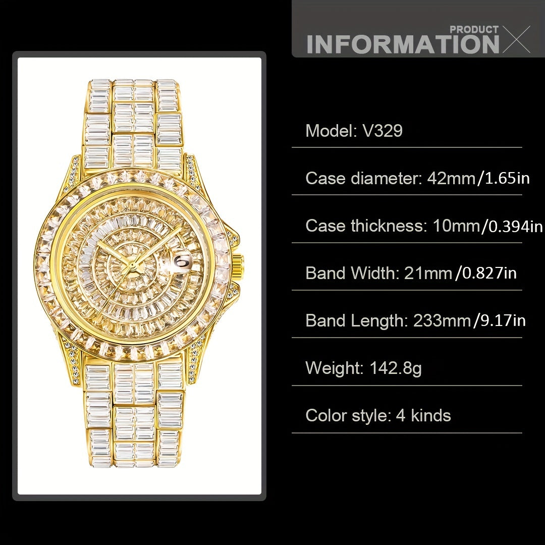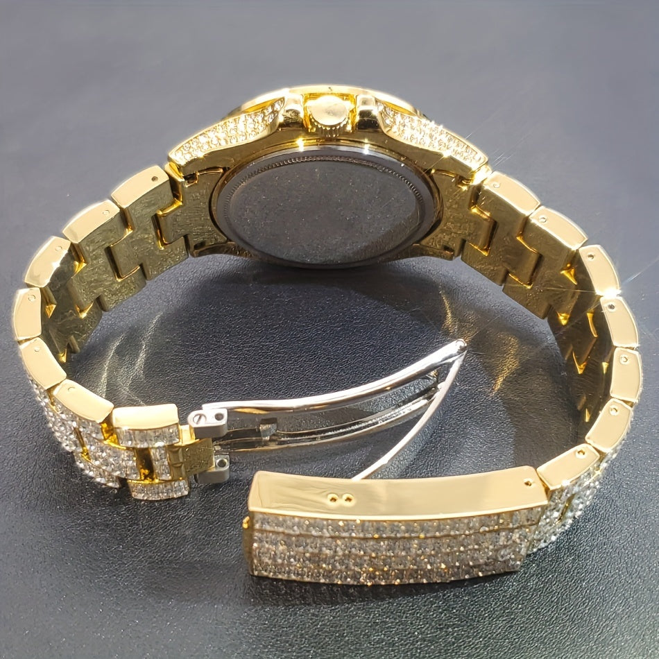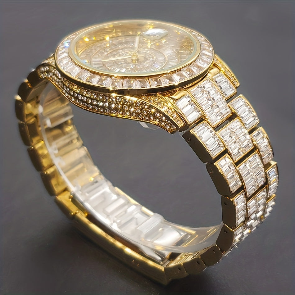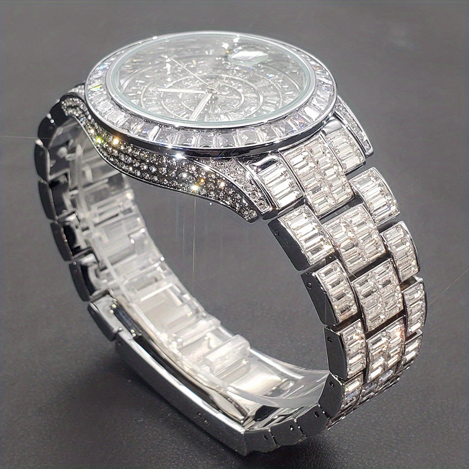 Elevate Your Style: Men's Quartz, Rhinestone-Embellished Waterproof Watch - Perfect for Fashion & Parties
