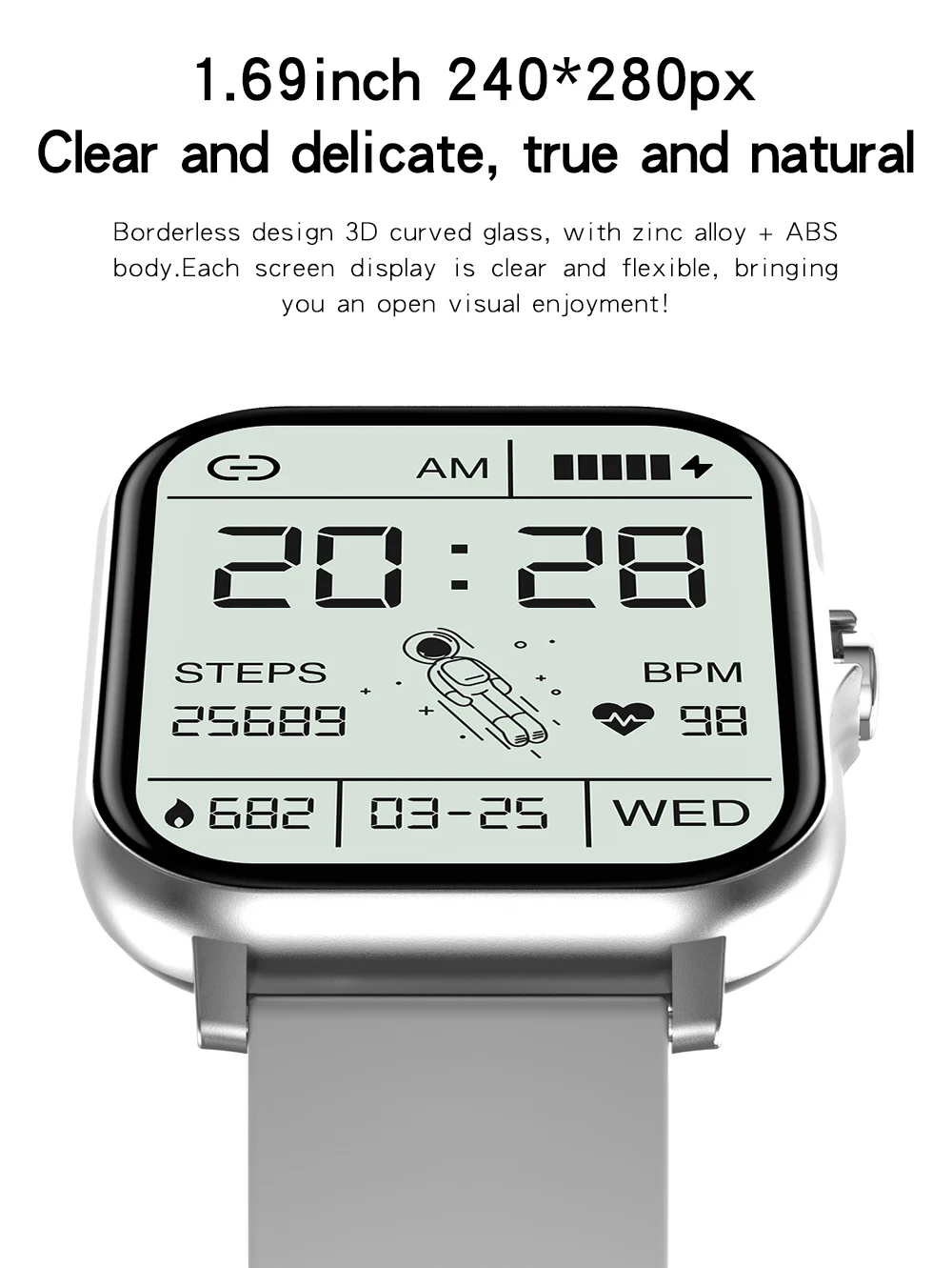 GT20 Smart Watch Men Women BT Call 1.69 Inch Big Screen Sport Heart Rate Monitor Smartwatch Sports Watches Clock for Girl Boy