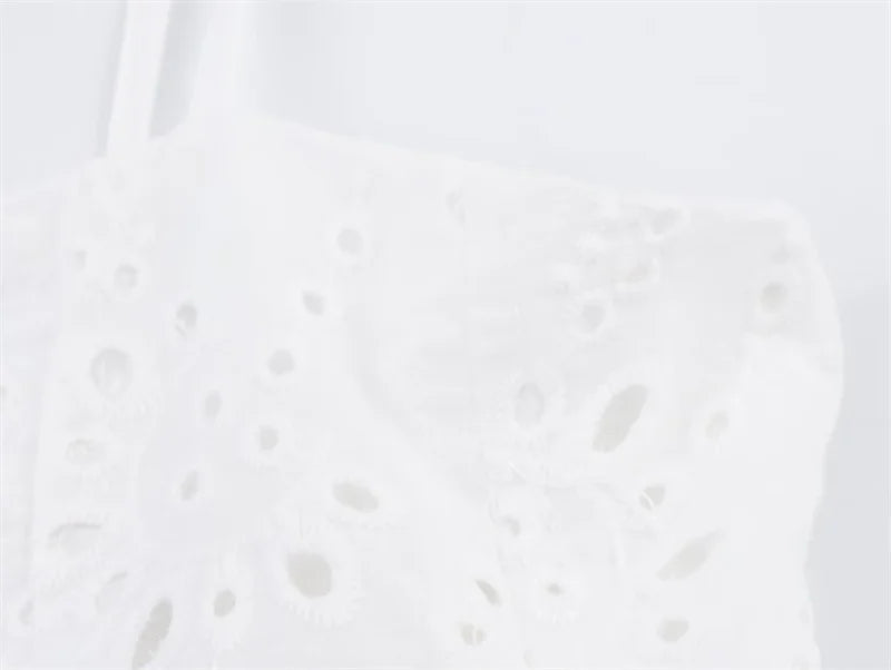 Ladies' Top 2025 Summer New Arrivals White Strap Wave Hem Top Embroidered Sexy Fashion Casual Versatile