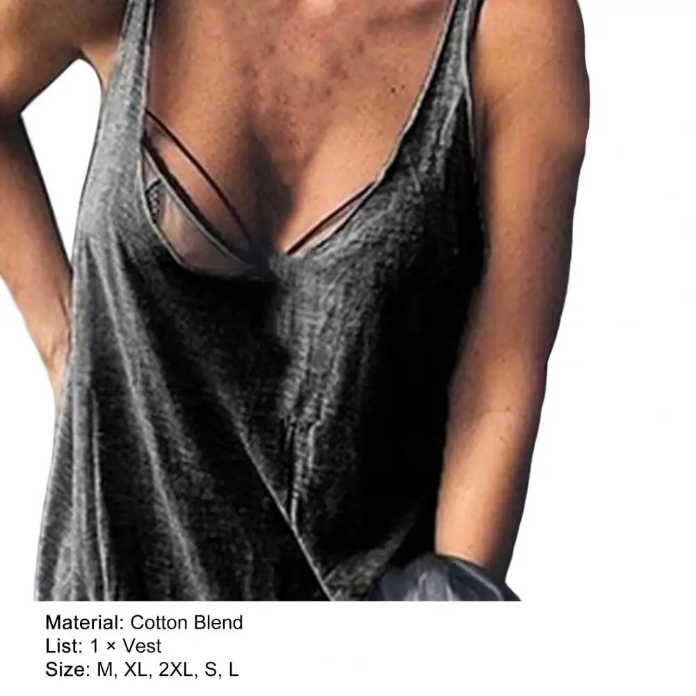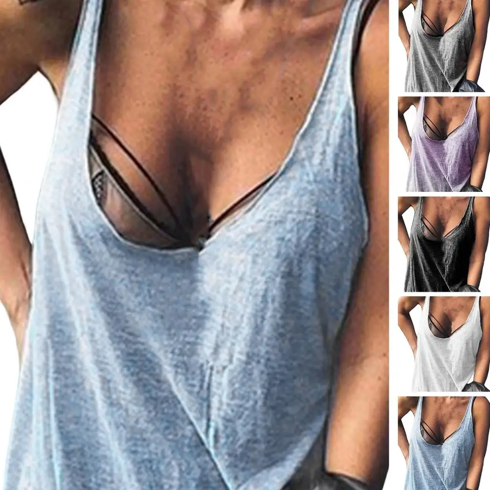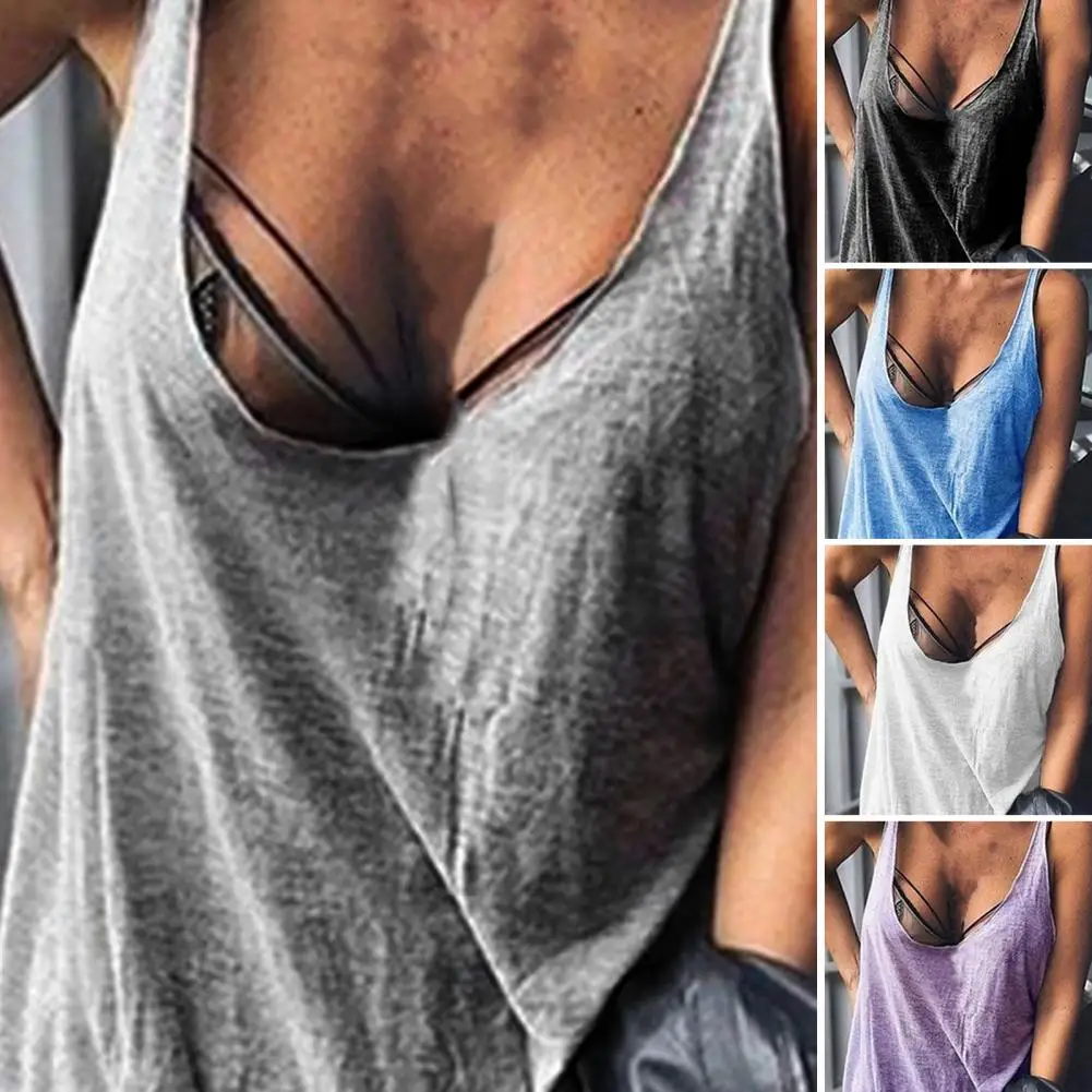 Lady Casual Solid Color Loose Tees U-neck Sleeveless Thin Women Vest Low Collar Stretchy Lady Summer Simple T-shirt Streetwear