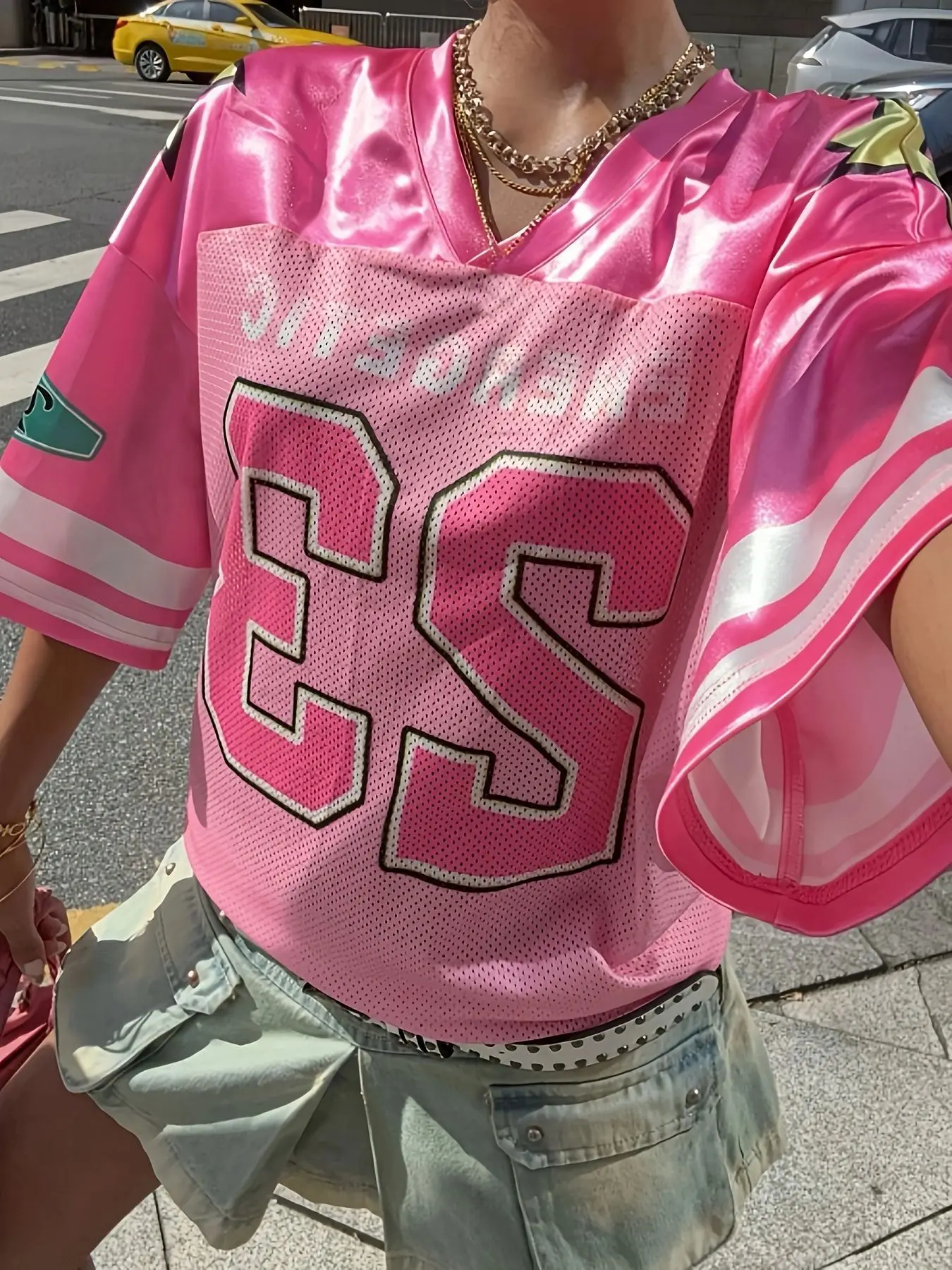 Lady Pink European and American Fashionable Loose Casual Street Printed Sportswear Tops Summer Girl Style Short Sleeved T-shirt