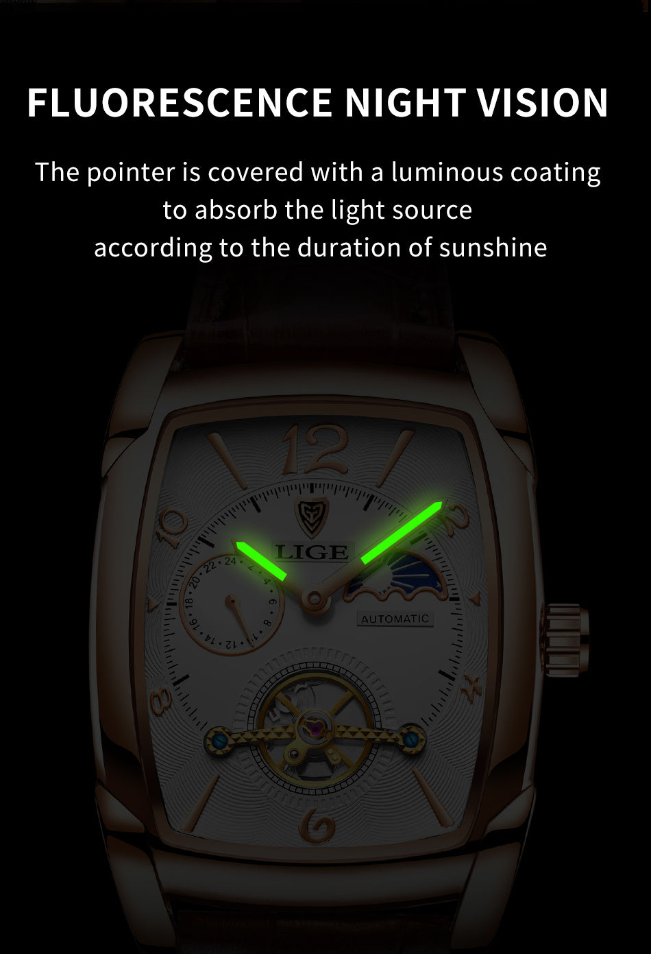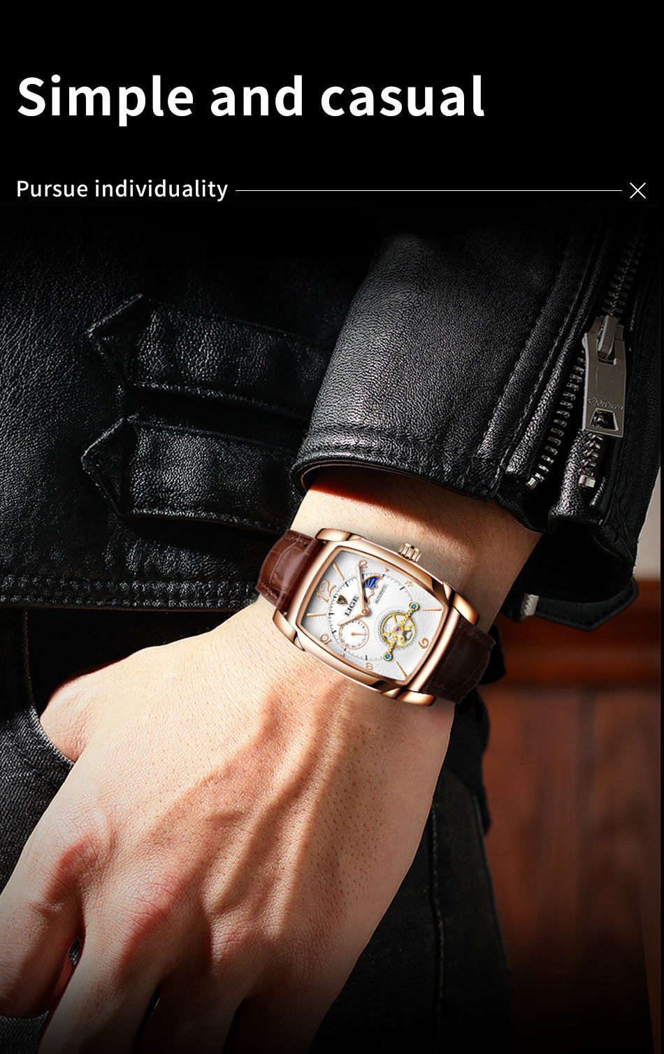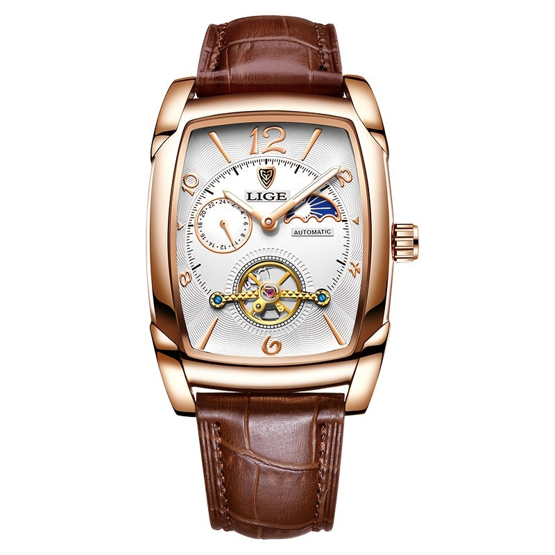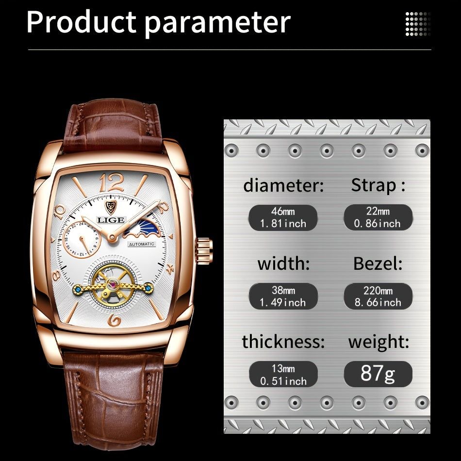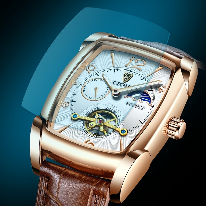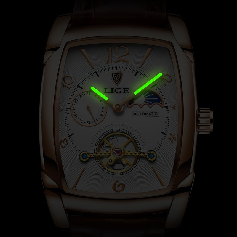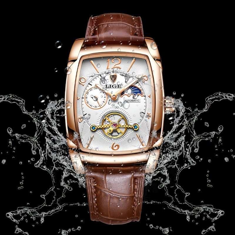 LIGE 2023 Vintage-Inspired Mechanical Men's Watch – Waterproof, Rectangular Leather Timepiece, Perfect Gift