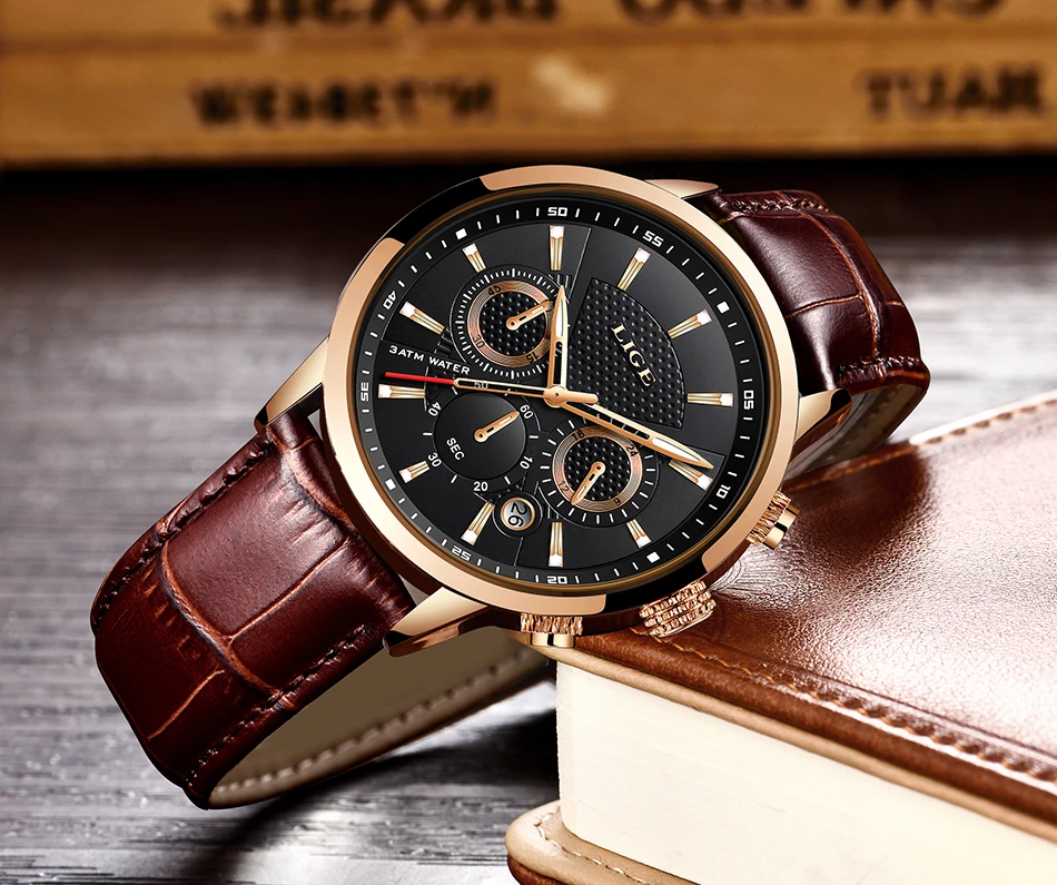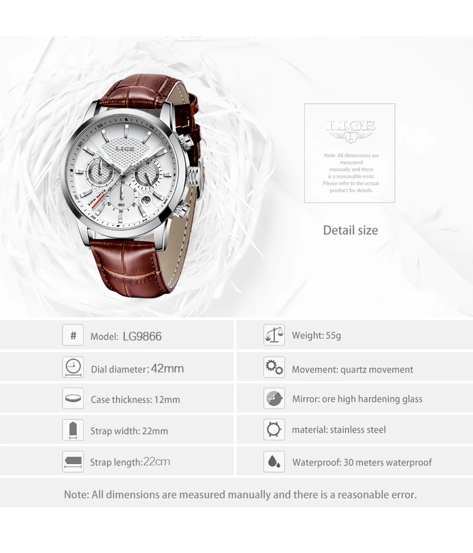 LIGE Watches Men 2024 Top Brand Luxury Casual Leather Quartz Men Watch Man Business Clock Male Sport Waterproof Date Chronograph