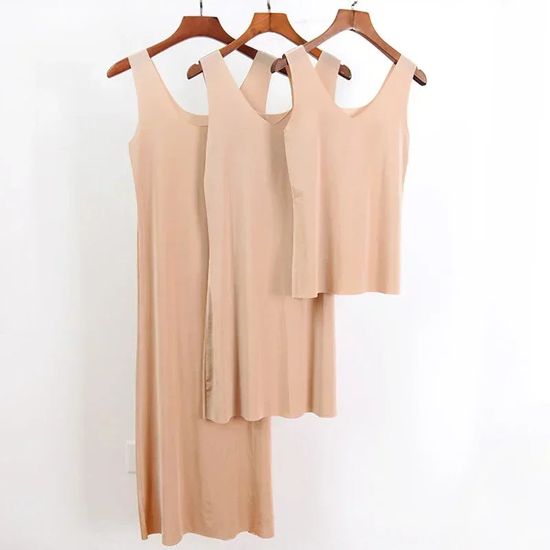 M-5XL Plus Size Full Slips Dresses For Women Summer Thin Seamless Ice Silk Petticoat Underskirt Sleeveless Underwear Dress Slips