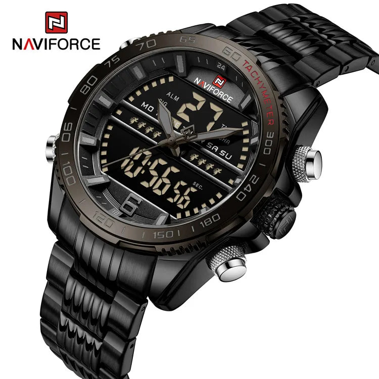 NAVIFORCE 9195S Mens Multi Function Waterproof Sports Watch Fashion Stainless Steel Chain Analog LED Watch