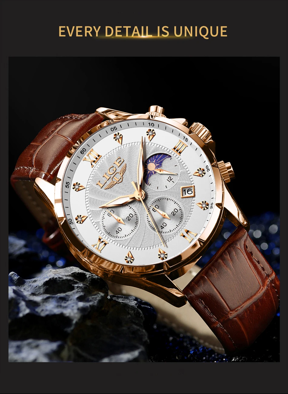 New Mens Watches LIGE Top Brand Luxury Leather Casual Quartz Watch Men's Sport Waterproof Clock Watch Relogios Masculino+Box