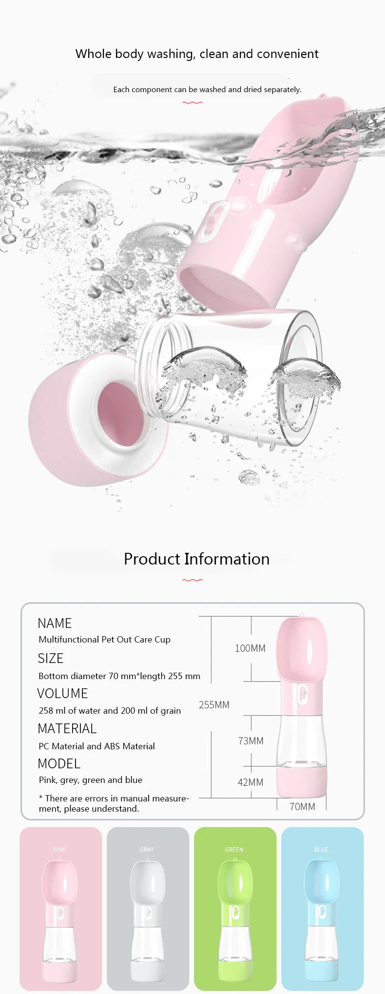 Pet Dog Water Bottle Portable Drinking Water Feeder Bowl Cat Food Feeding For Puppy Outdoor Walking Travel Supplies Pet Products