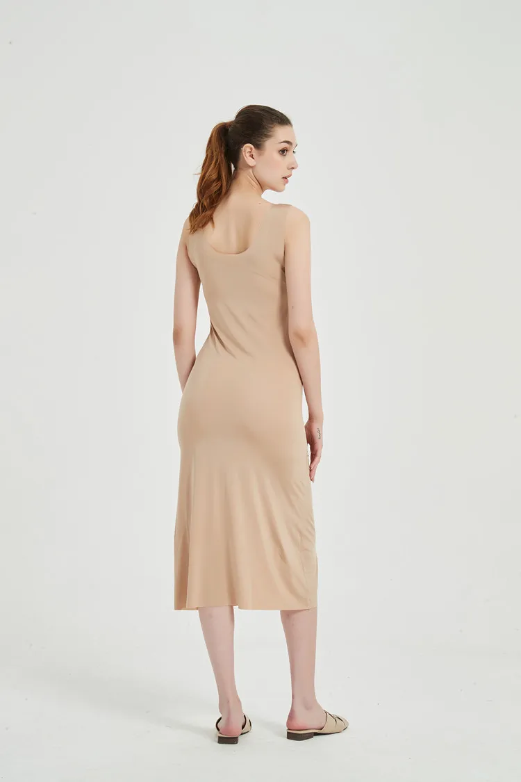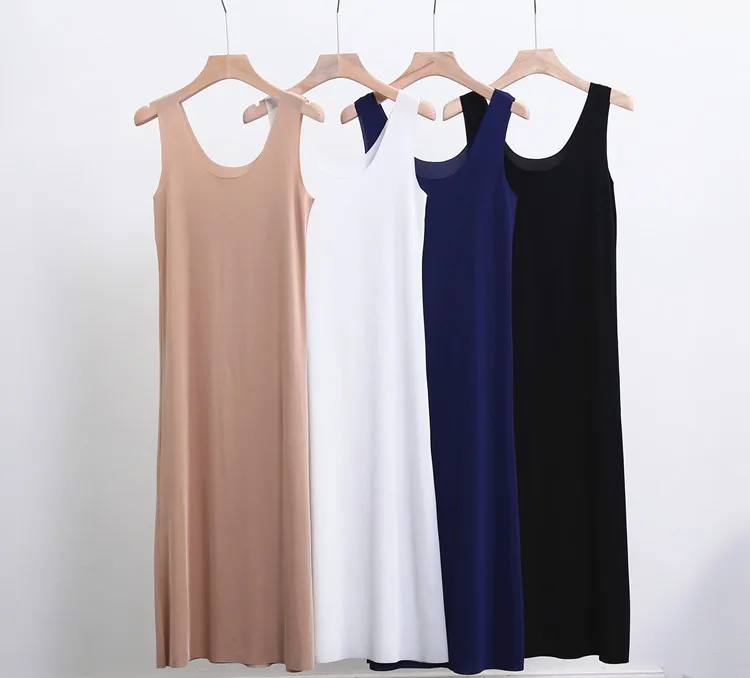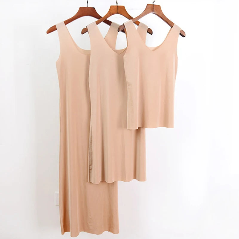 Plus Size Full Slips Dresses For Women Thin Seamless Ice Silk Summer Petticoat Underskirt Dress Sleeveless Inner Vest Dress 5XL