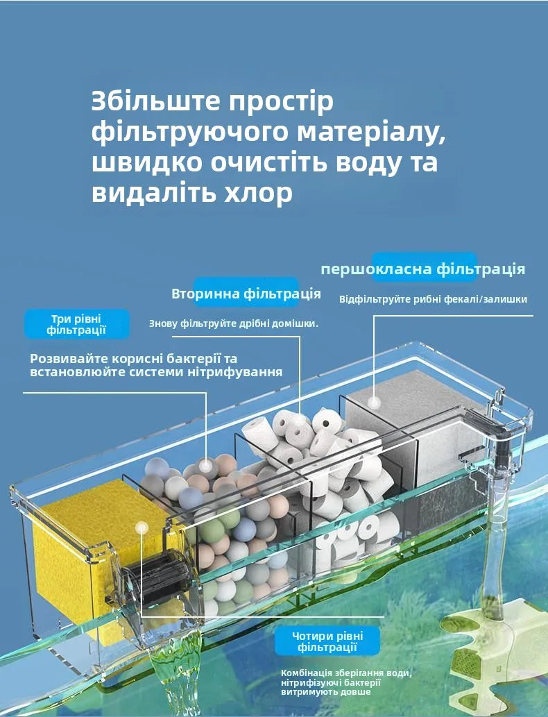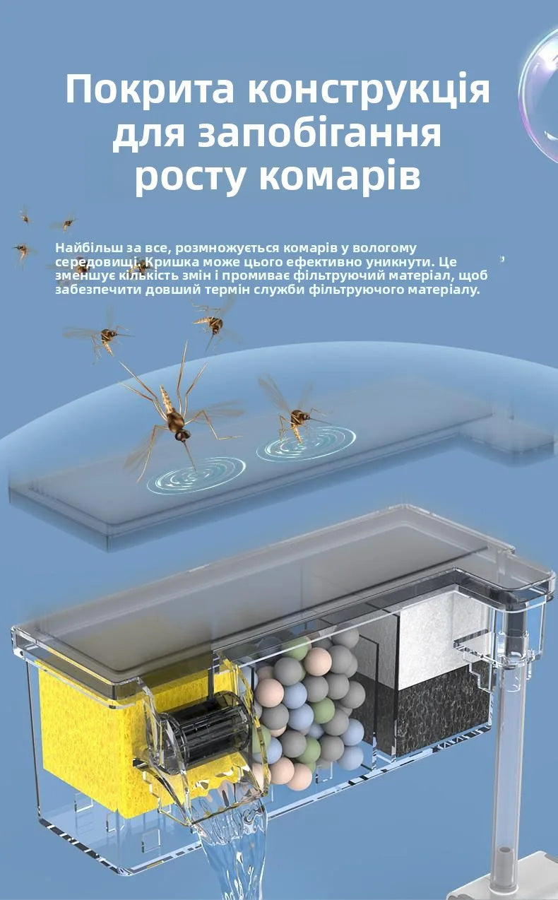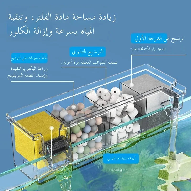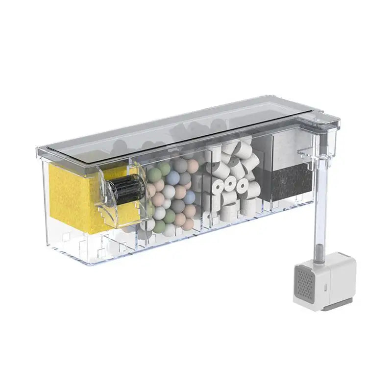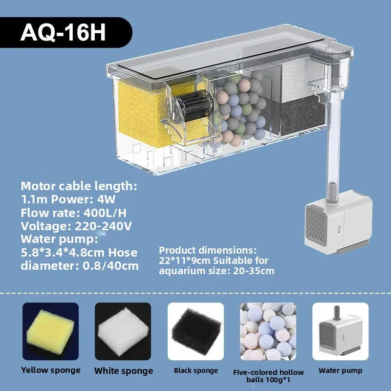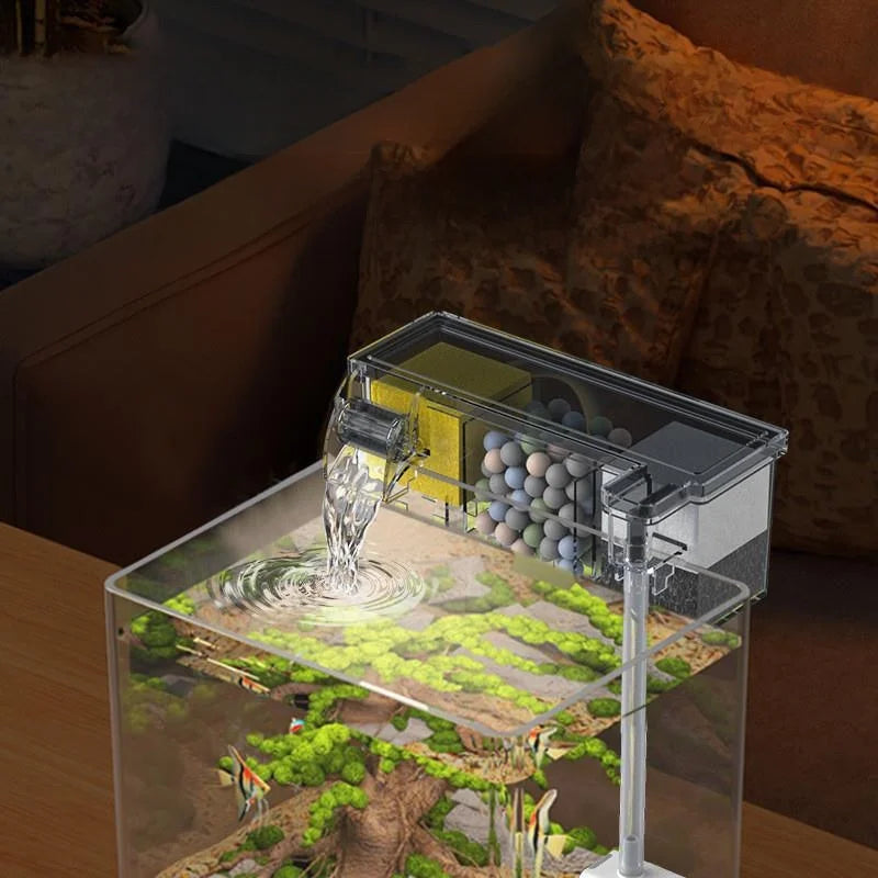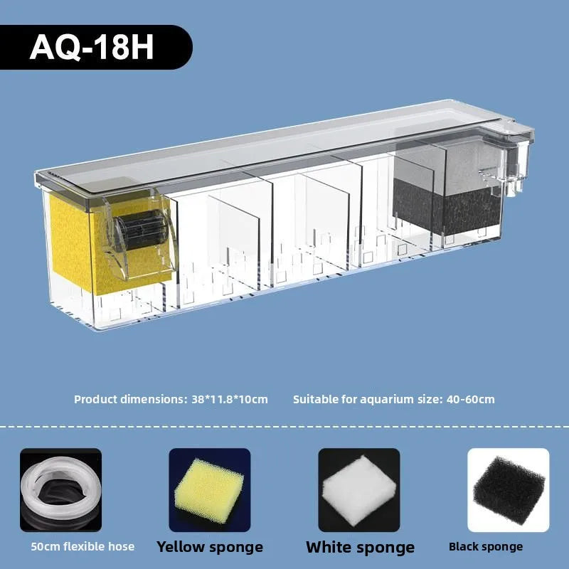 The external wall-mounted fish tank filter operates silently, ensuring a peaceful environment for your pets and their habitat.