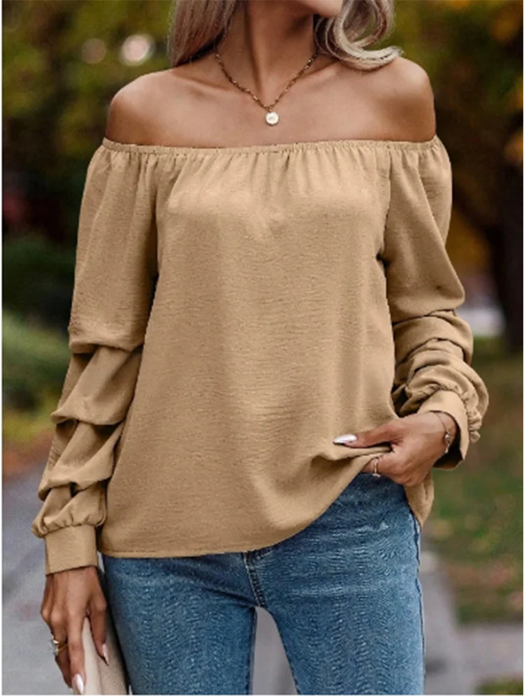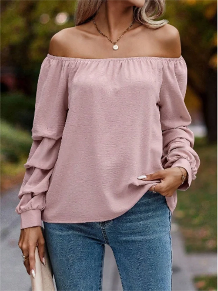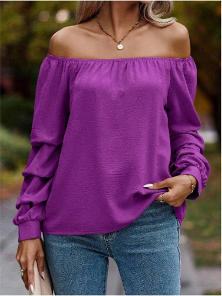 Sexy Long Sleeve Solid Color Off Shoulder Top Women's Folding Sleeves T-Shirt Elegant Casual Autumn Party Clothes