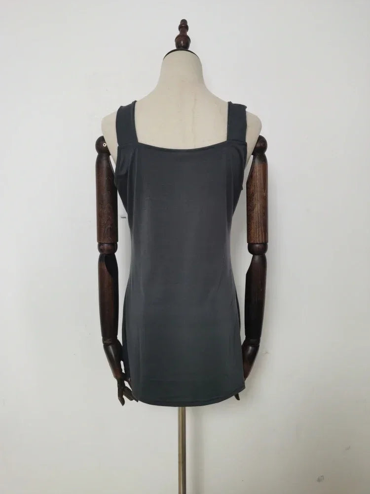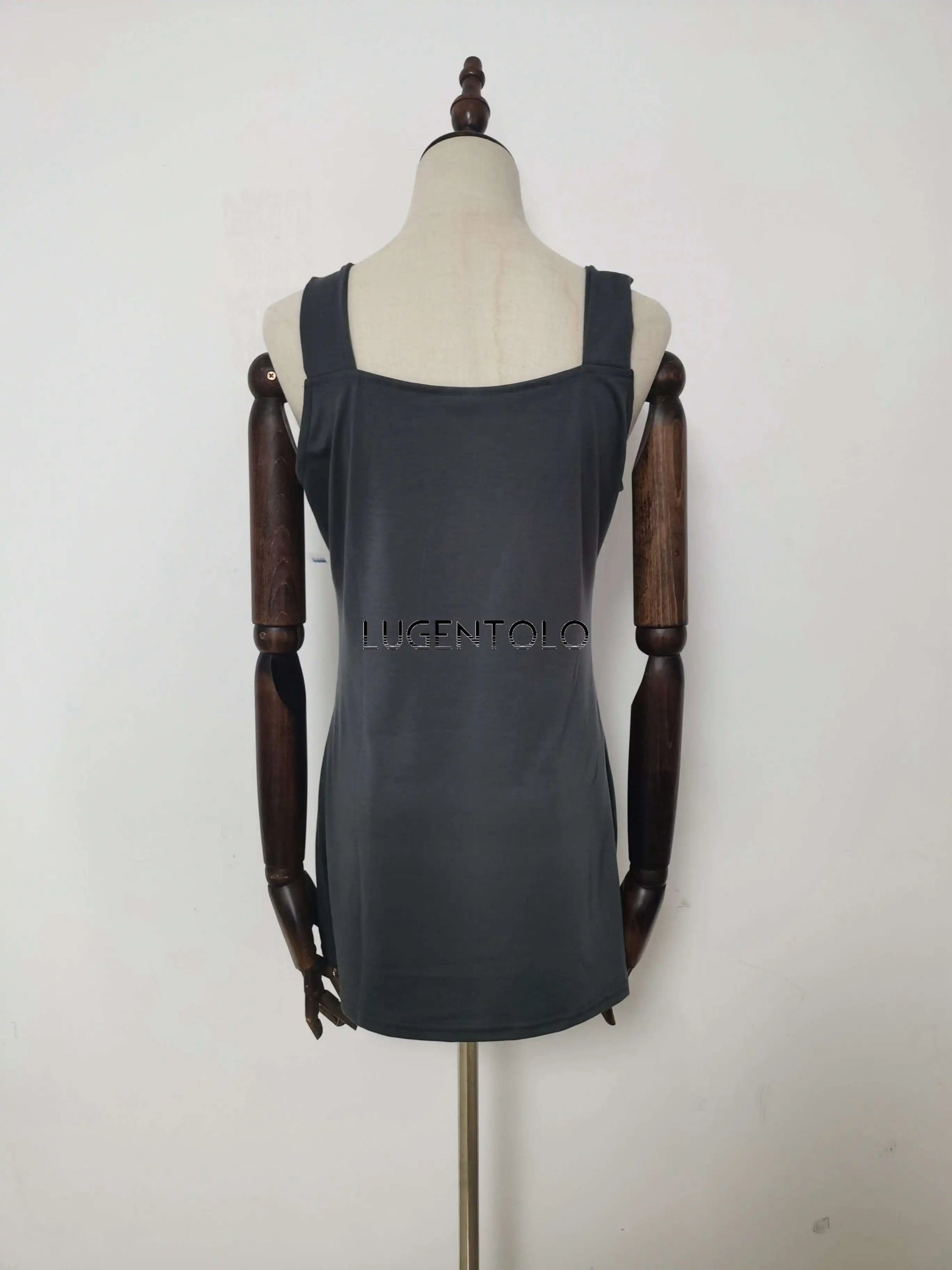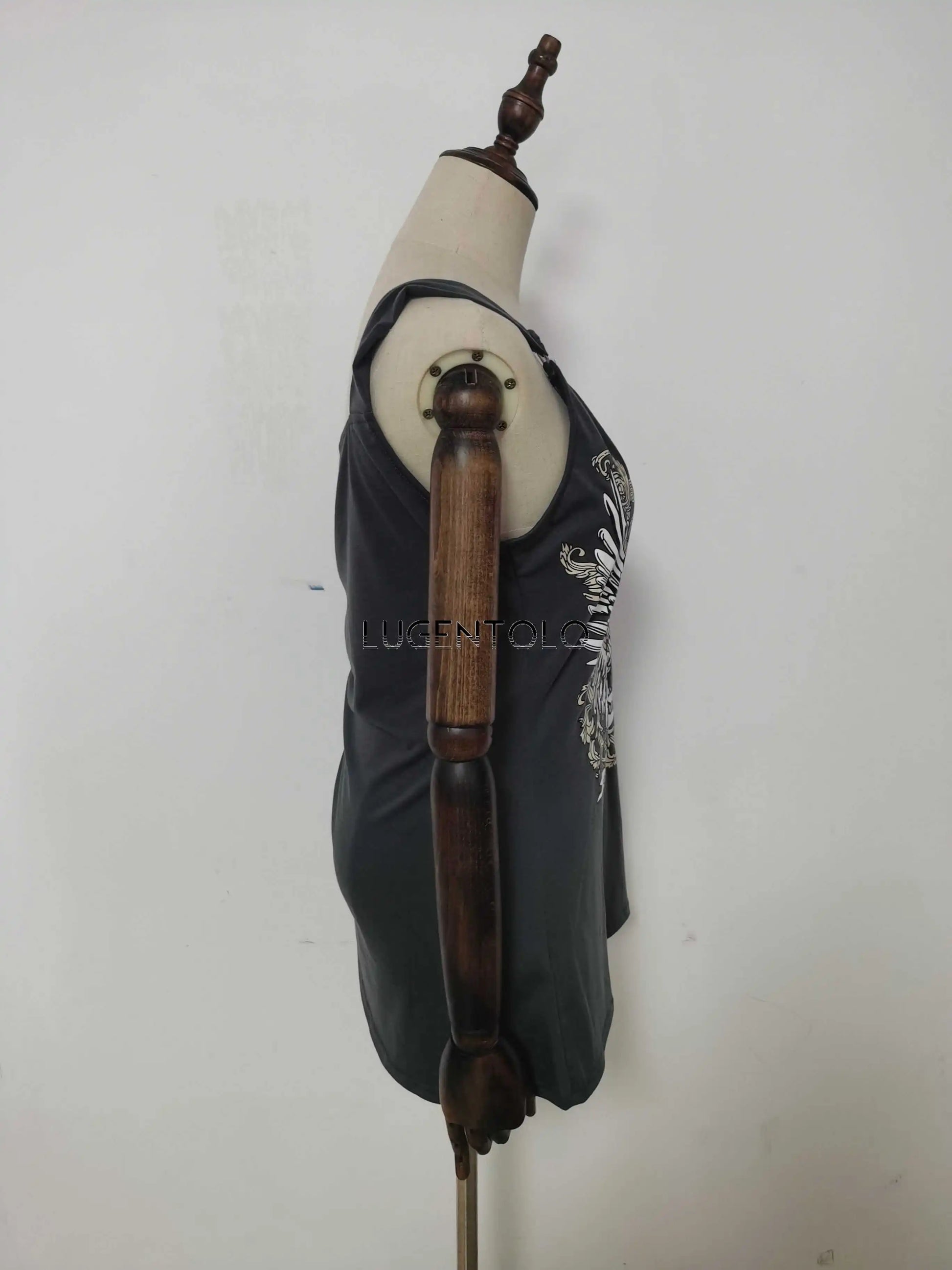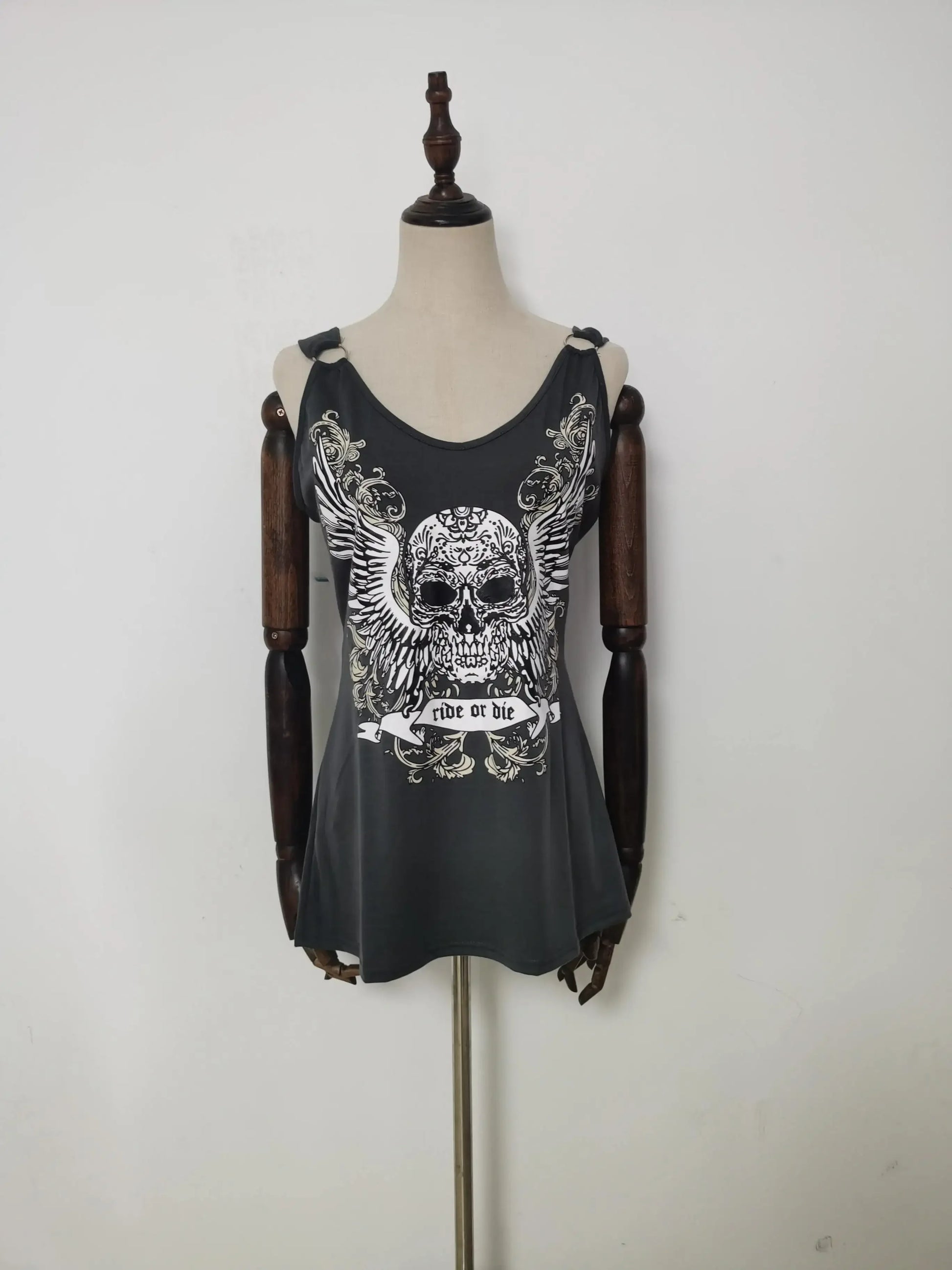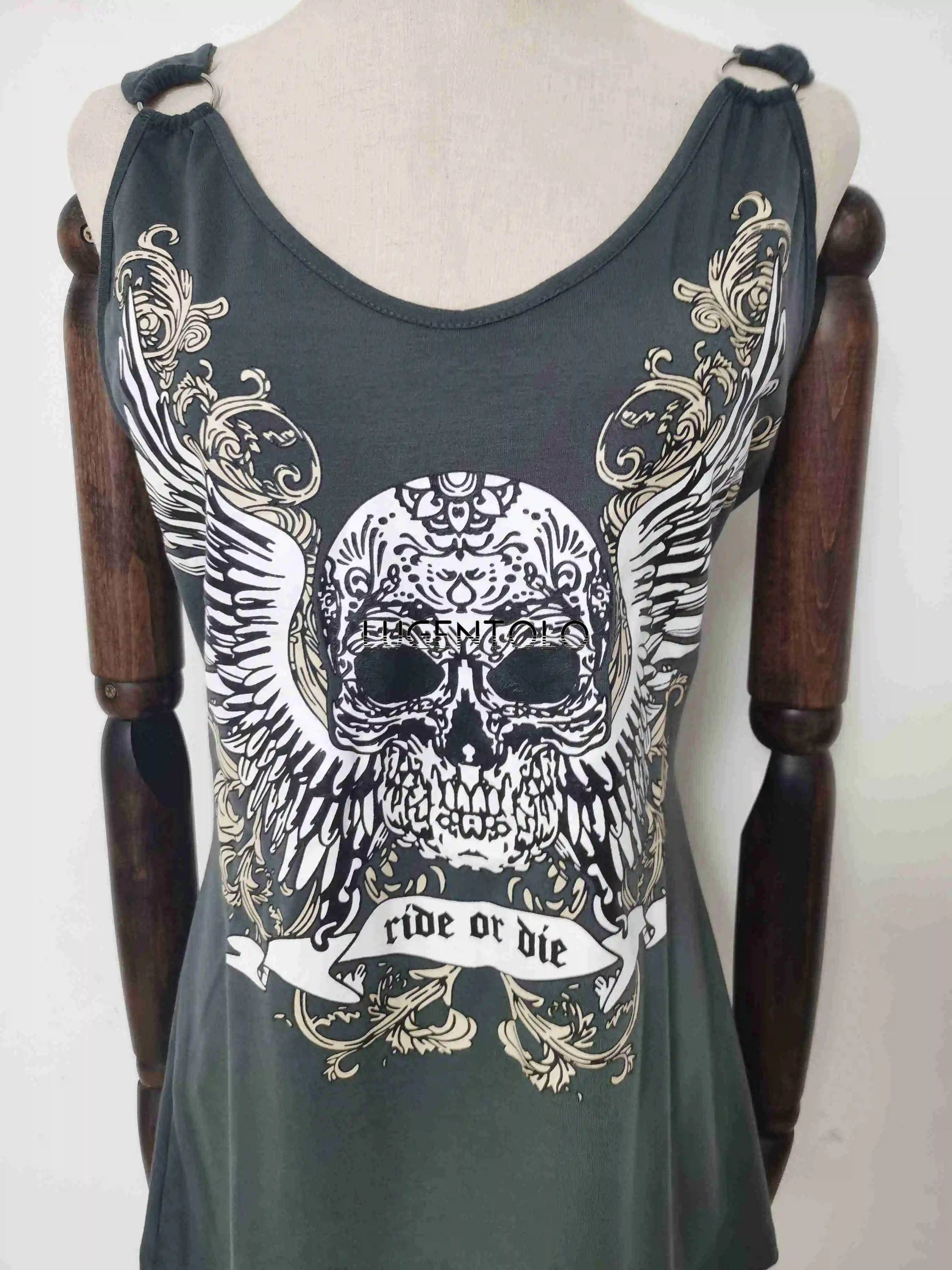 Skull Print Tank Top Women Summer New Sexy Tee Streetwear Round Neck Casual Loose Long Tops Black Fashion
