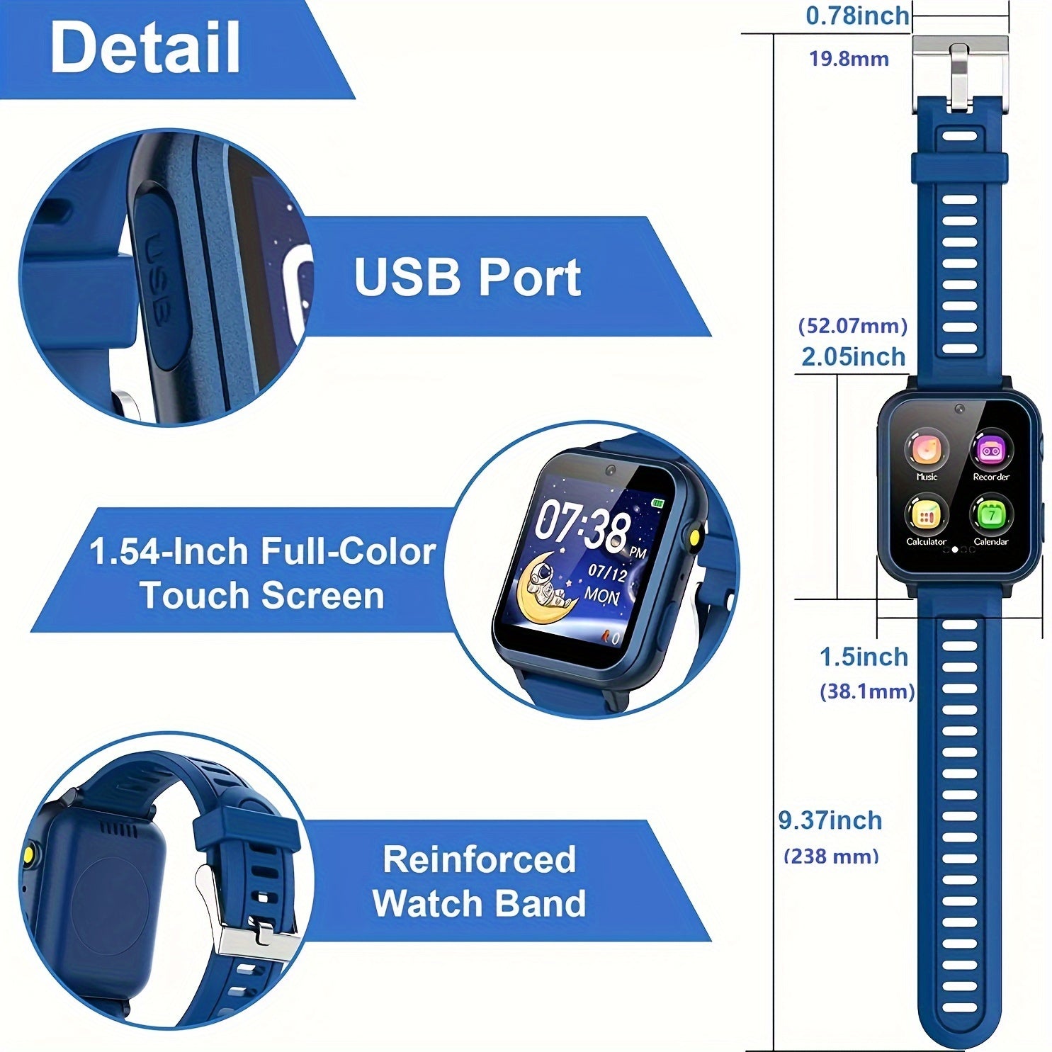 Teenagers Game Smart Watch With 24 Puzzle Games, HD Touch Screen Camera, Music Player, Pedometer Alarm Clock, Calculator Flashlight 12/24 Hr Students Watches, Gift For Boys Girls, Fitness Tracker Watch
