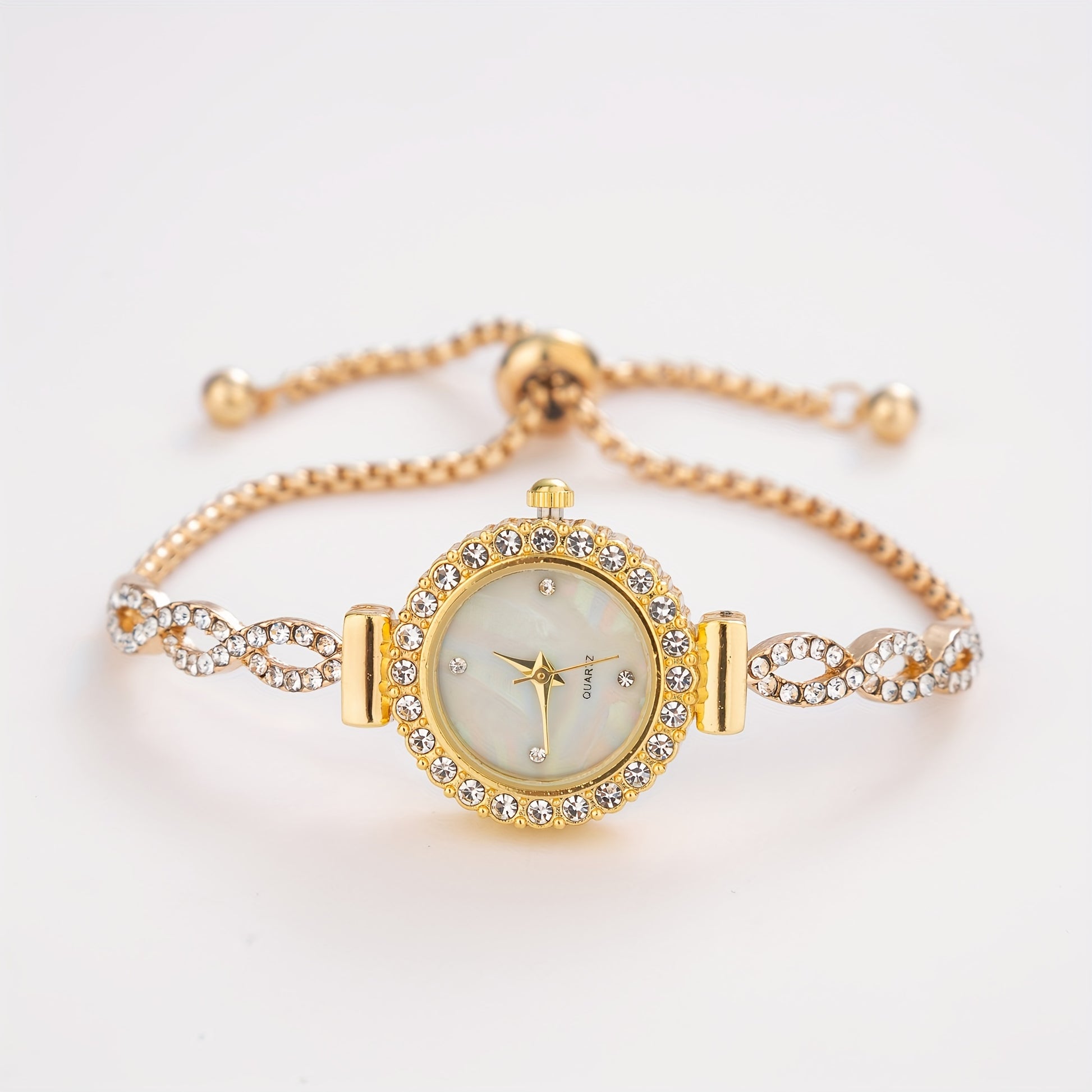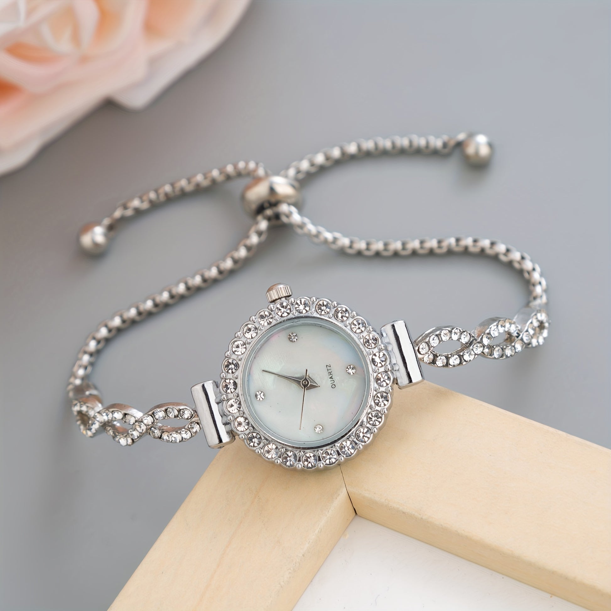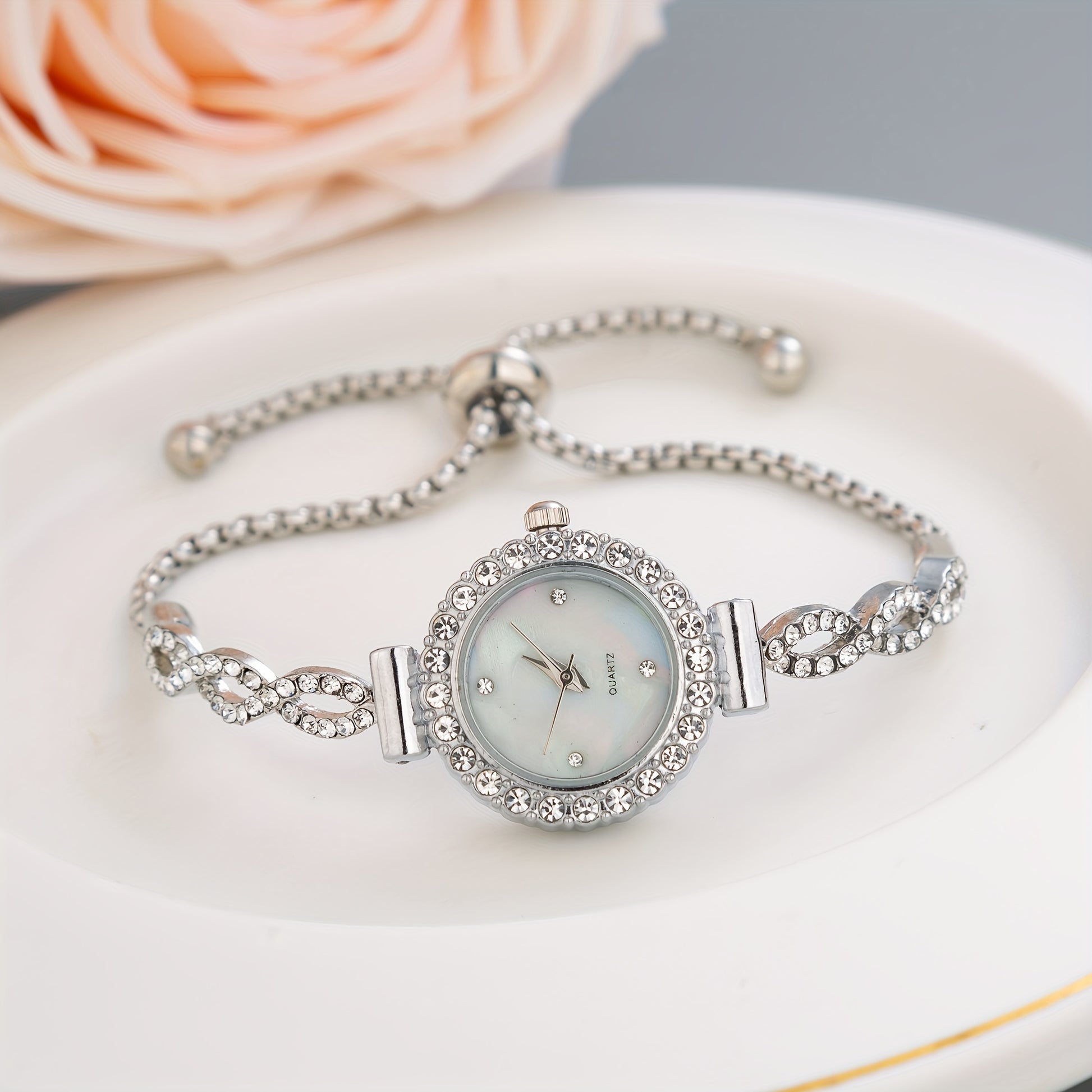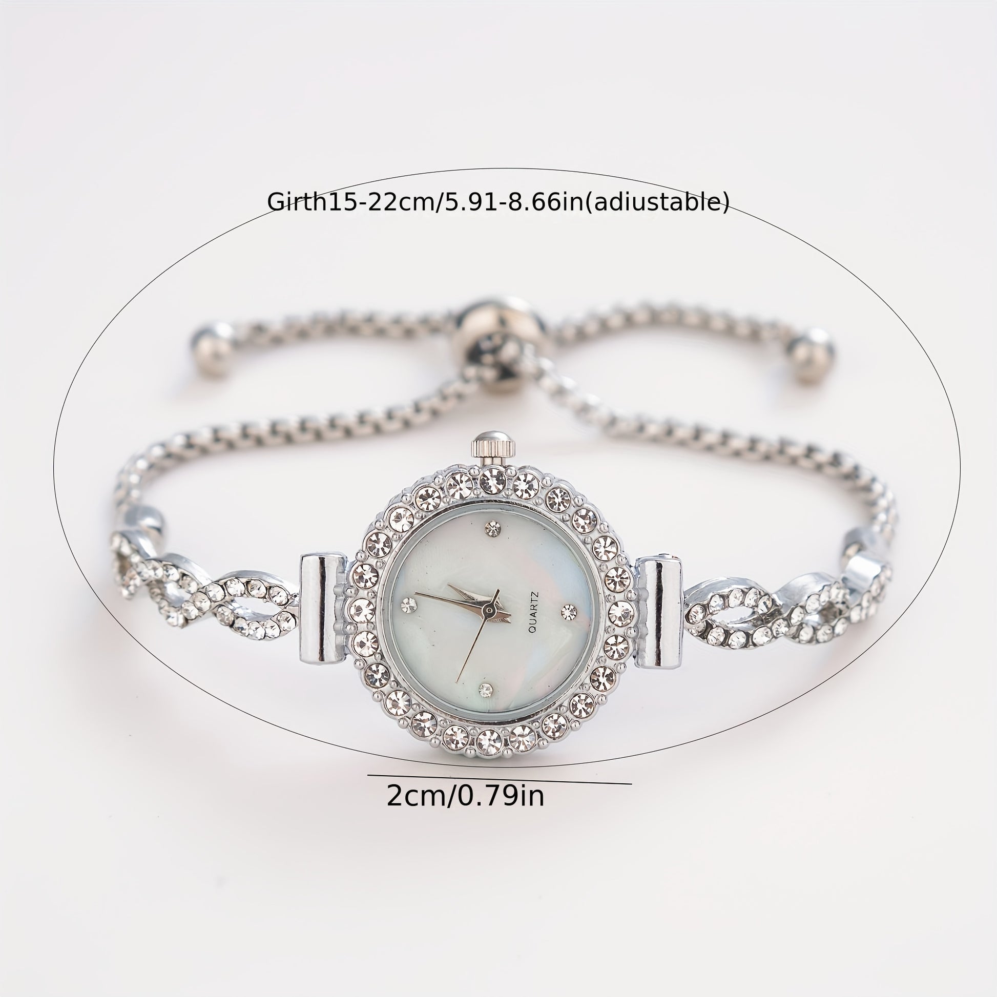 Women's Watch Luxury Rhinestone Quartz Bracelet Watch Elegant Iridescent Dial Analog Wrist Watch