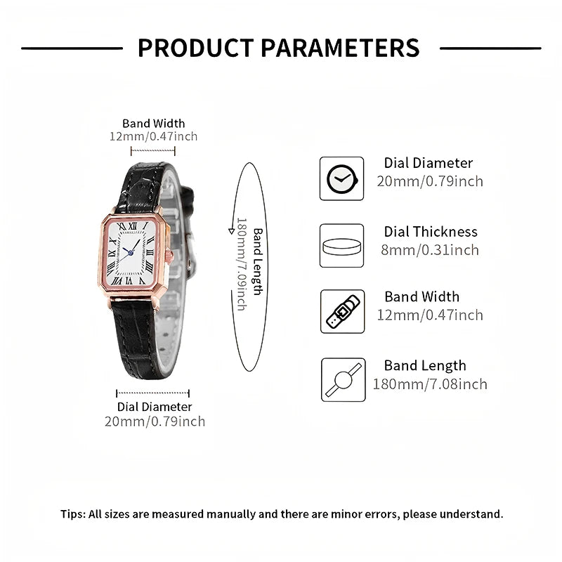Women's Watch, Quartz Watch, Simple Fashion Casual Watch, Small Elegant Leather Strap, Square Dial with Roman Numerals